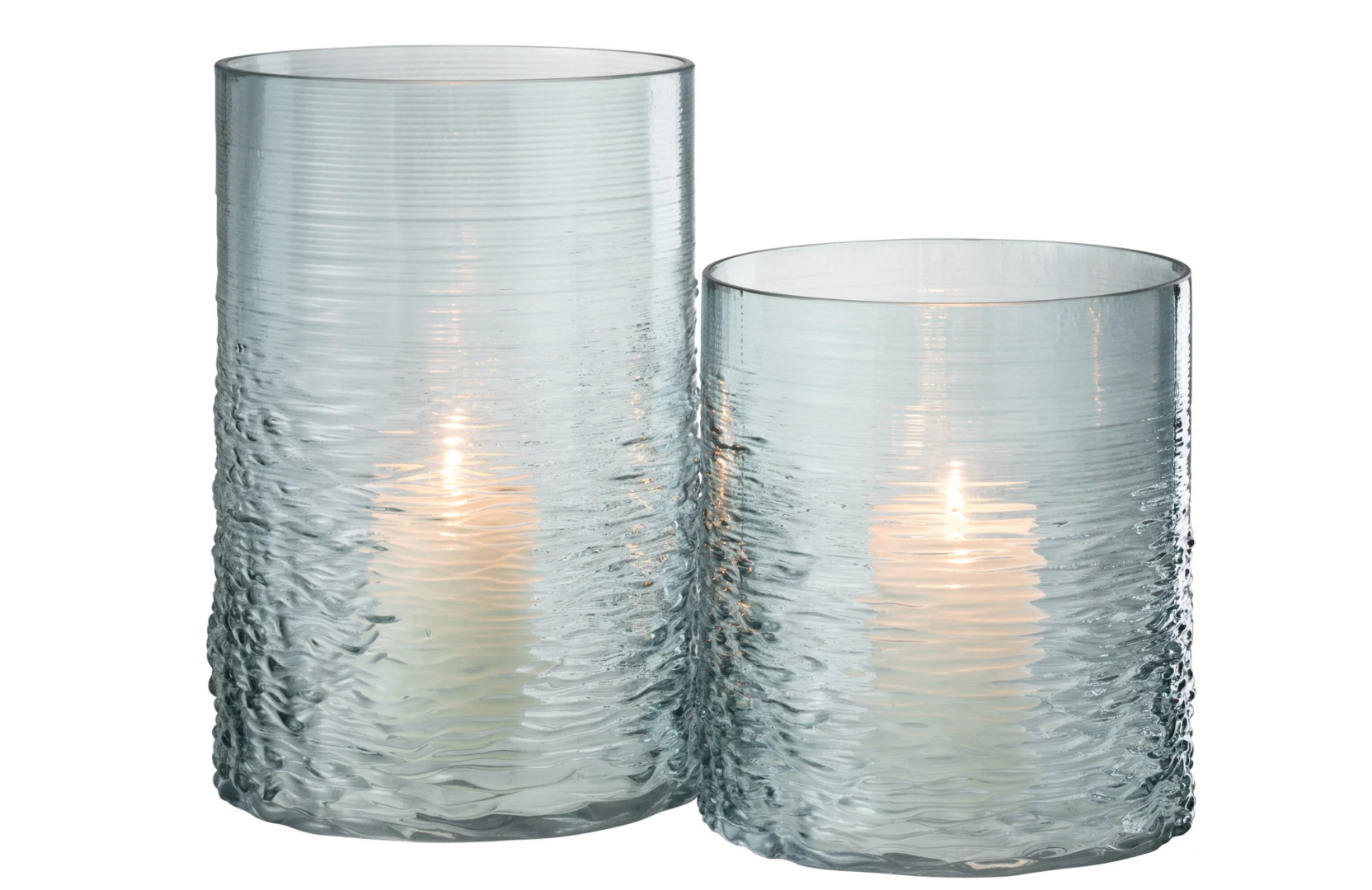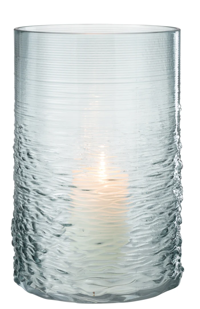 Geef je interieur een vleugje kustluxe met dit grote blauwe windlicht van J-Line. Het dikke glas met zeeglas-look laat kaarslicht prachtig dansen; als kaarsenhouder van 30 cm hoog is het een blikvanger op tafel, dressoir of vensterbank.