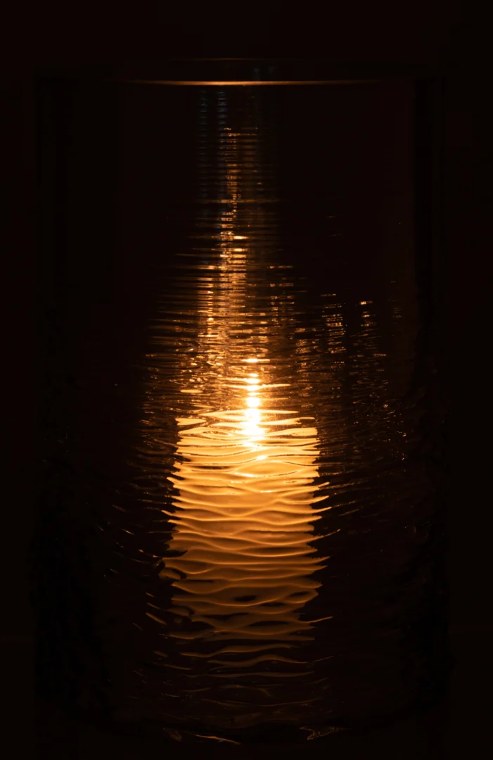 Creëer in een handomdraai een warme sfeer. Het royale formaat biedt plek aan grotere stompkaarsen en het stevige glas tempert tocht. Ideaal voor woonkamer, eettafel of overdekt terras; ook zonder kaars een stijlvol accent.