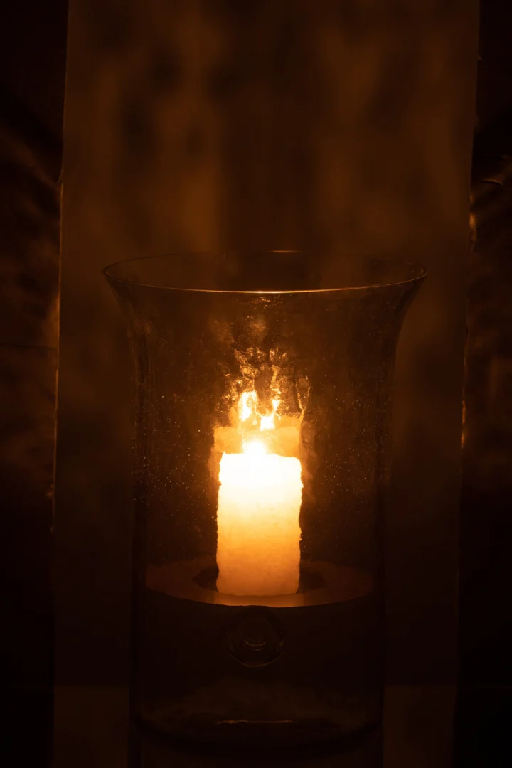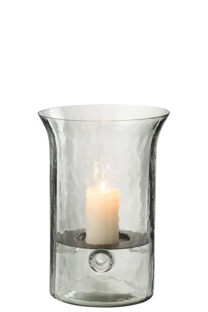 Breng warm, sfeervol licht in huis met deze transparante glazen kaarsenhouder – een elegante sfeermaker die moeiteloos in elk interieur past.
