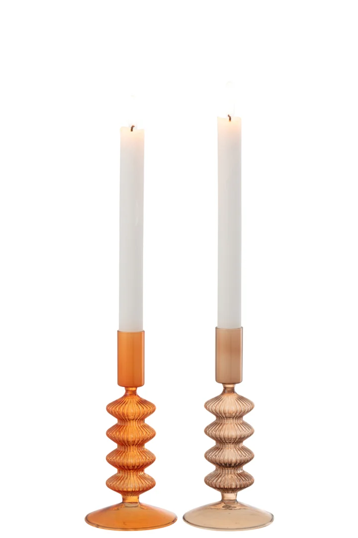 Kaarsenhouder Ribbel Glas Oranje Mix Set 2