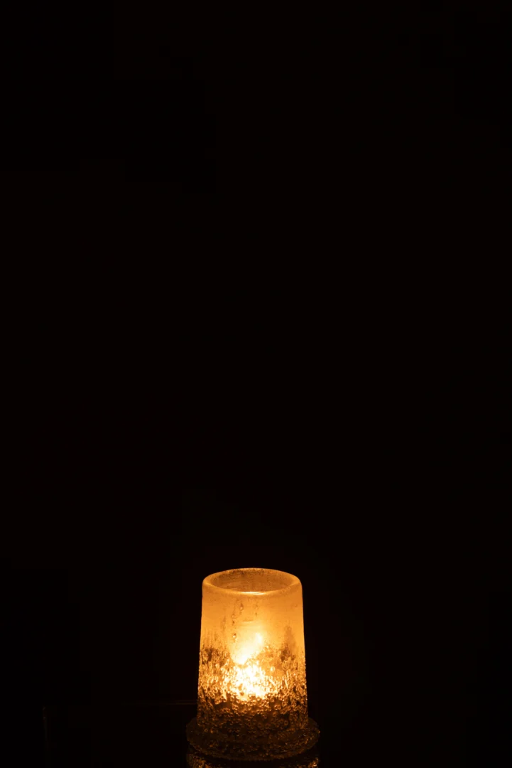Compacte en lichte kaarsenhouder die zacht licht verspreidt; kwetsbaar bij vaak verplaatsen. Geschikt voor sfeervolle binnenruimtes.