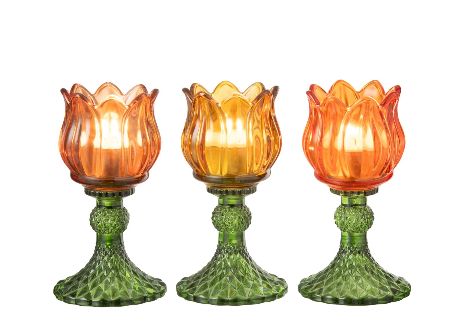 Breng instant sfeer in huis met deze glazen kaarsenhouder in een speelse mix van kleuren. Het slanke, compacte model van 15 cm hoog past overal en laat het kaarslicht prachtig schitteren.