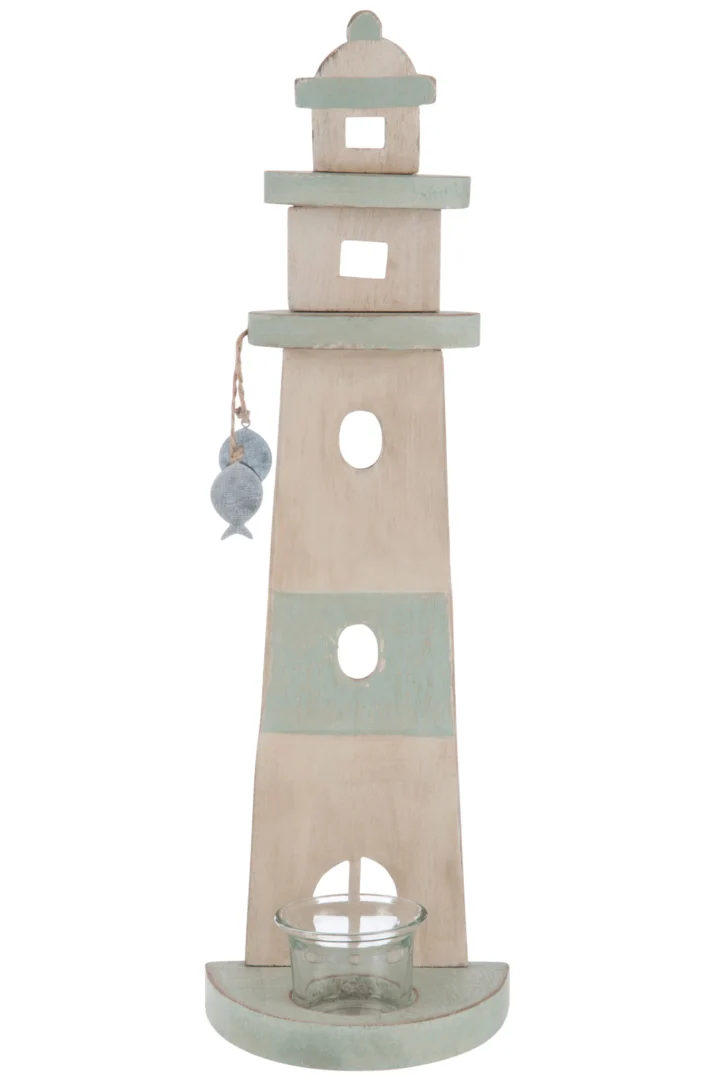 Deze kaarsenhouder geeft een zomerse touch aan een veranda-avond met vrienden. Het lichte hout en de maritieme kleuren passen perfect in een strandinterieur. Minder geschikt voor grote kaarsen. Ideaal voor liefhebbers van frisse, natuurlijke decoratie. Aanrader voor sfeermakers.