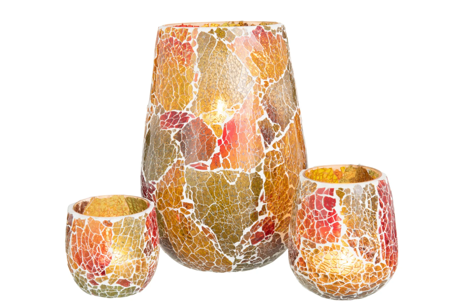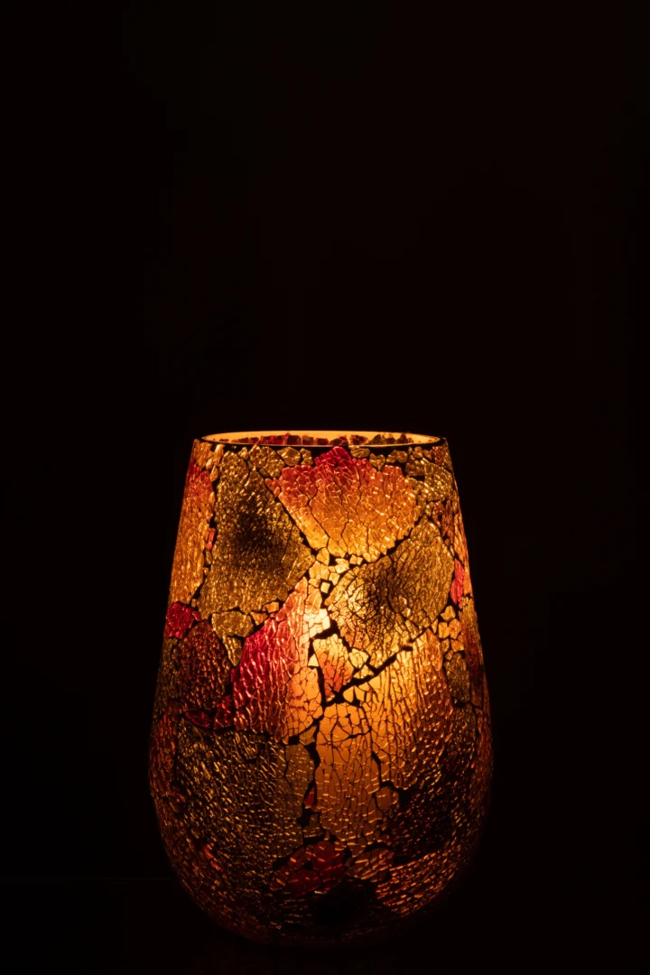 Laat je interieur stralen met deze sfeervolle kaarsenhouder in warme oranje/roesttint. Het stevige glas vangt en verstrooit het kaarslicht prachtig voor een knusse, uitnodigende gloed in elke ruimte.