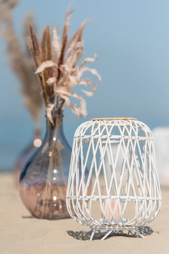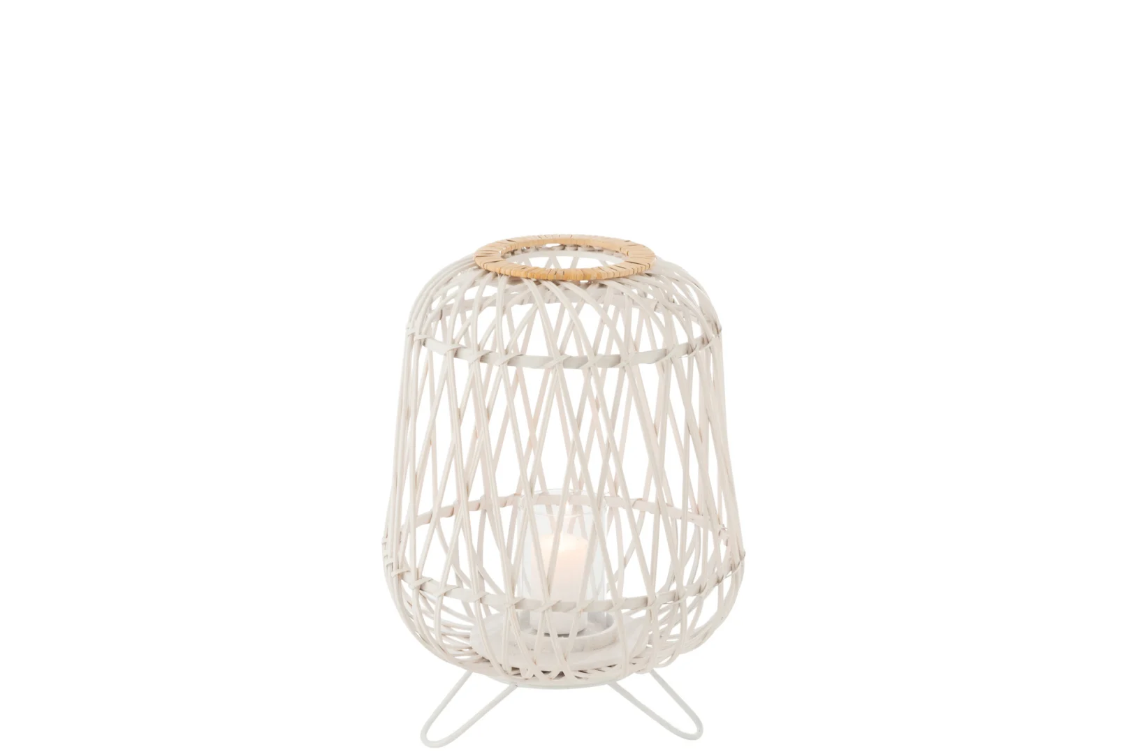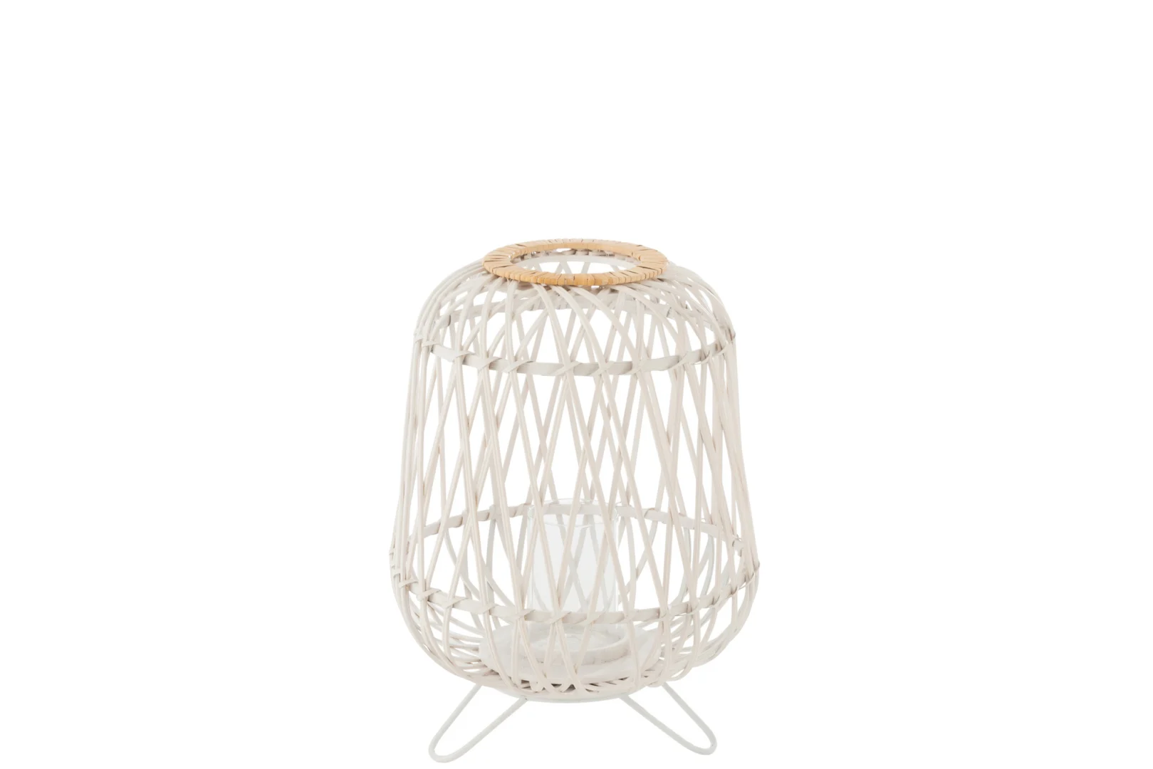 Lantaarn Bamboe Wit Natuurlijk Op Voet Klein