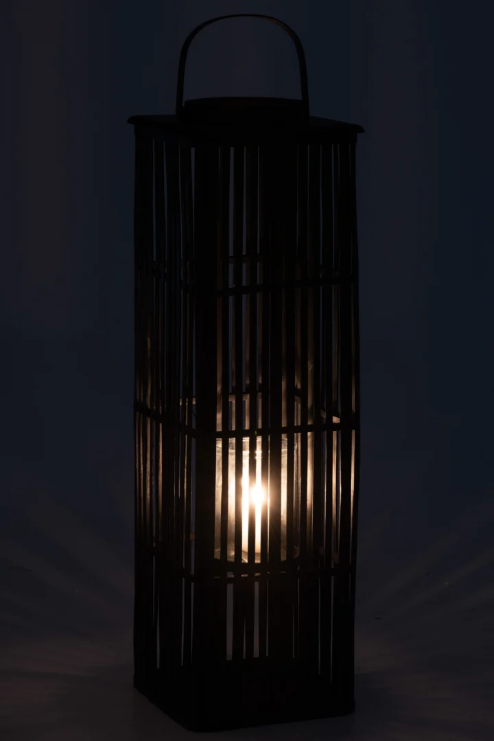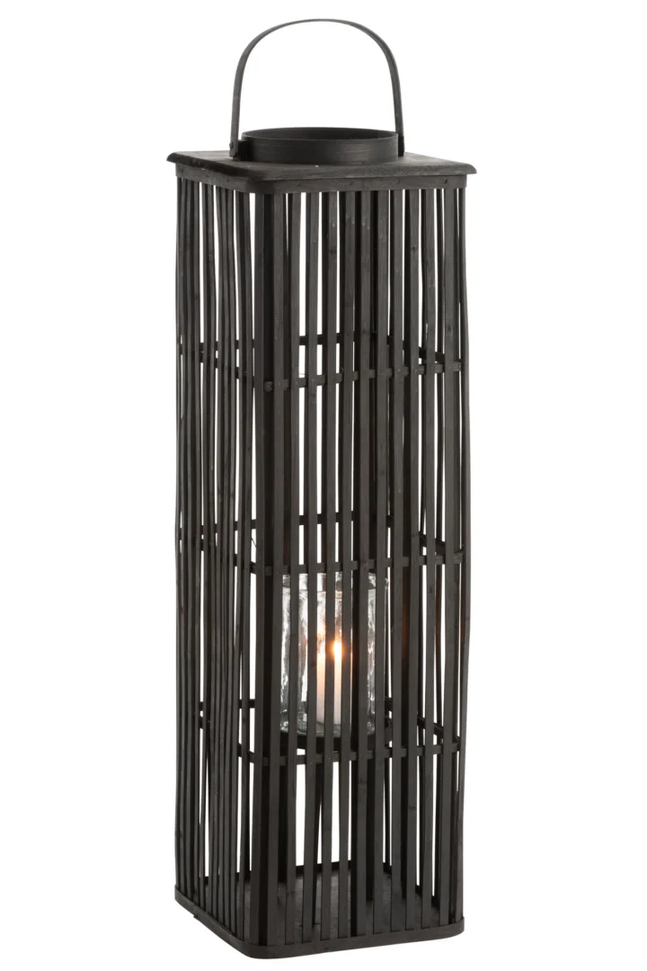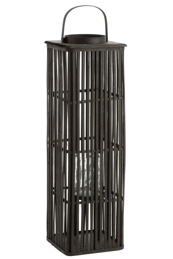 Materiaal: rotan en glas. Kleur: zwart. Afmetingen: H 90 x B 28 x L 28 cm. Gewicht: 3,36 kg. Collectie: Zomer 2019. Onderhoud: afstoffen met een droge doek; glas reinigen met mild sop; bij voorkeur binnenshuis of buiten onder afdak gebruiken. Levertijd: 2–3 dagen.