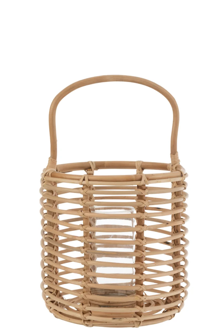 Geef je interieur een warme, natuurlijke gloed met dit royale windlicht. De combinatie van handgevlochten rotan en een glazen inzet maakt het een stijlvolle kaarsenhouder die direct sfeer brengt.