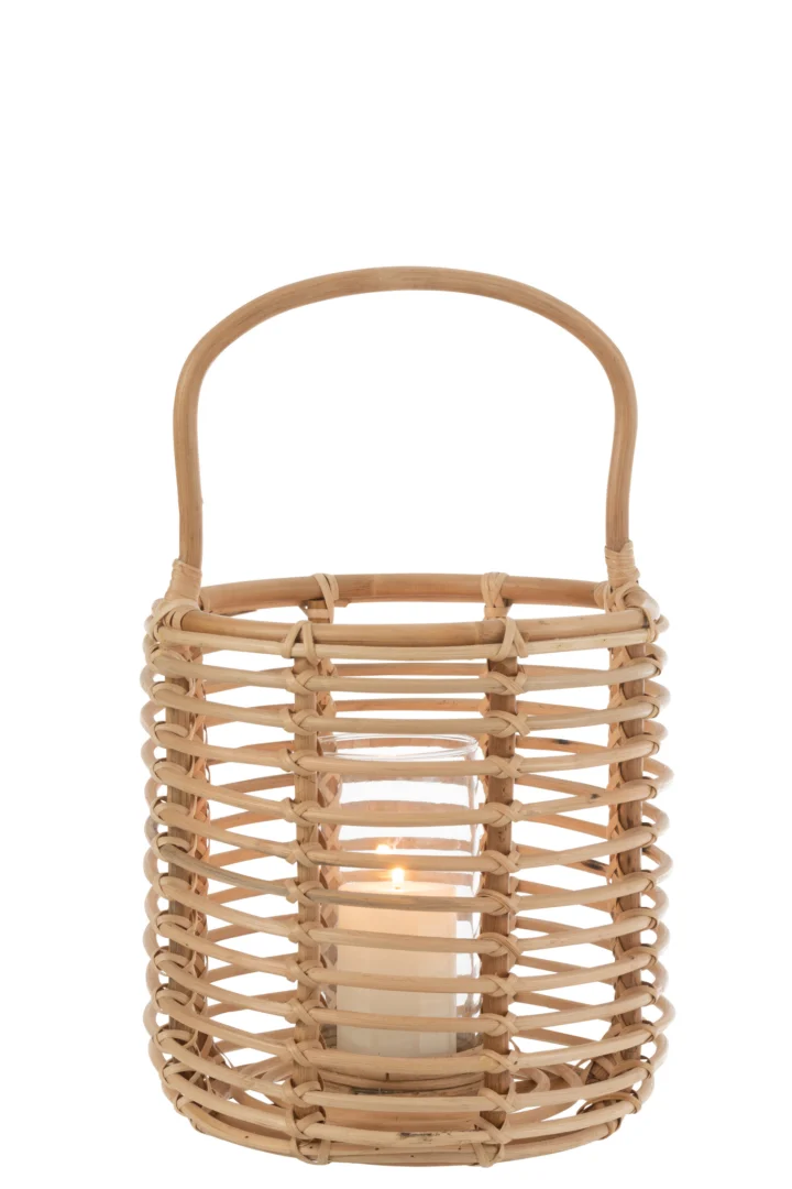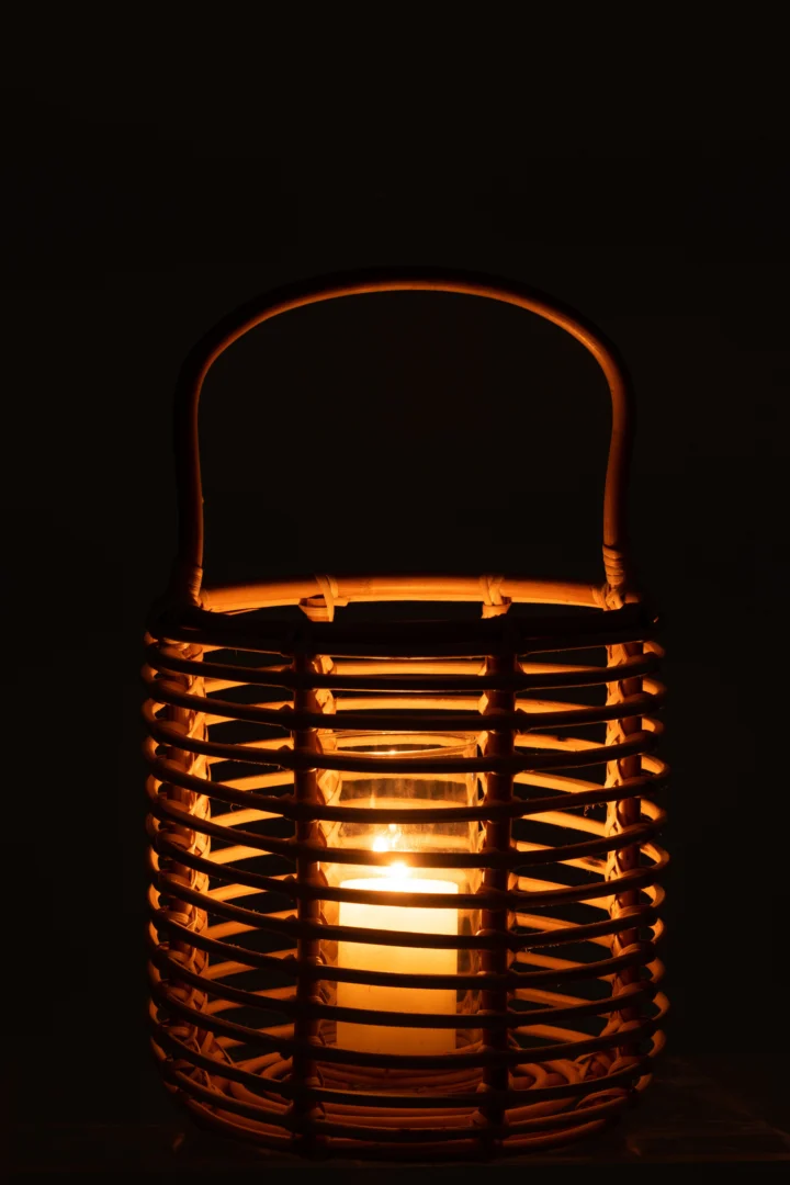 Zo helpt het jou: het glas schermt de vlam af tegen tocht en vangt druppels op, terwijl het rotan een prachtig lichtspel geeft. Perfect voor de woonkamer, hal of een overdekt terras; ook mooi op de vloer, een dressoir of bij de entree.