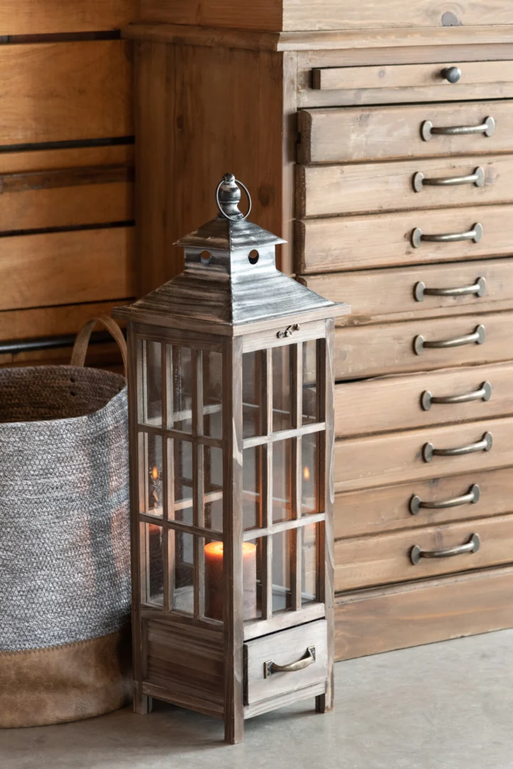 Deze vloerlantaarn past goed in een hoek van de woonkamer voor extra sfeerlicht. Het samenspel van vurenhout en metaal zorgt voor een robuuste uitstraling, en het glas geeft een zachte gloed. Door het formaat wat minder geschikt voor kleinere ruimtes. Ideaal voor liefhebbers van landelijke interieurs. Een doordachte keuze voor wie zoekt naar warmte en stijl.
