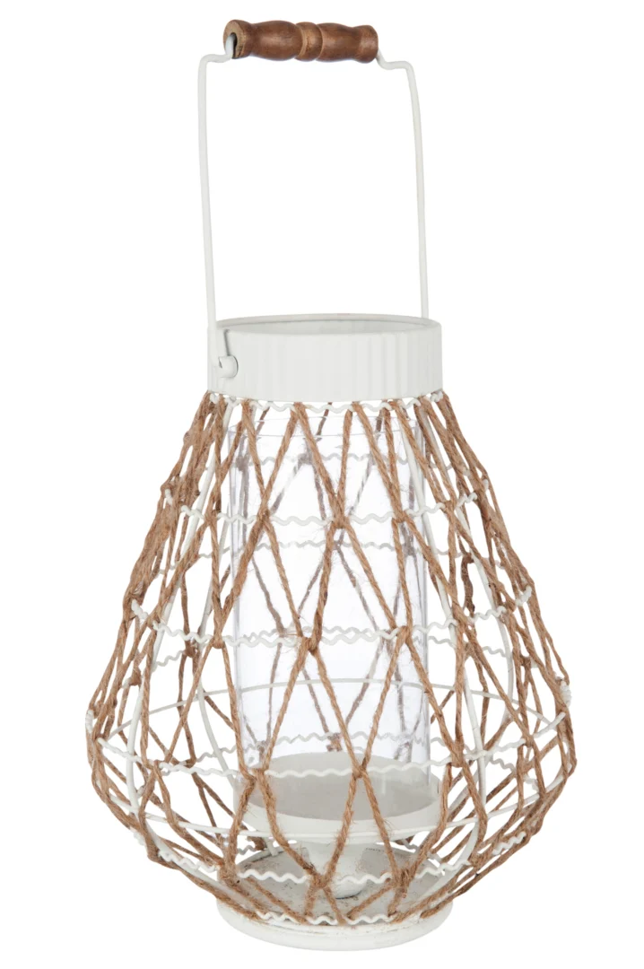 Tijdens een diner op het terras zorgt deze metalen lantaarn voor warme, sfeervolle verlichting. Het stevige jute touw en het witte design passen in elk interieur. Door het formaat is hij minder geschikt voor kleine ruimtes. Perfect voor liefhebbers van rustieke decoratie. Een stijlvolle aankoop voor gezellige momenten.
