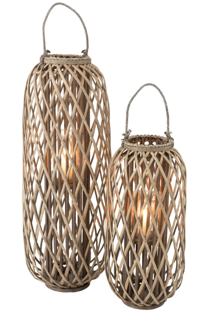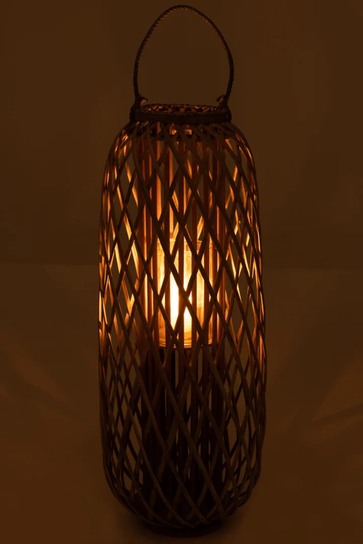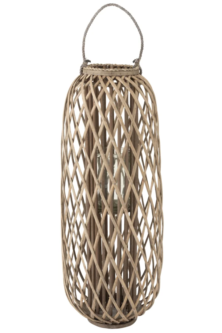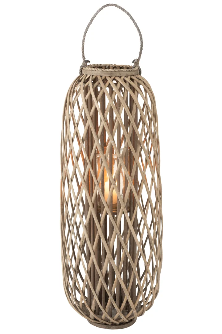 Breng direct sfeer in huis met deze hoge kaarsenhouder in grijs/greige. Het warme wilgenhout met glas zorgt voor elegante, veilige verlichting die in elke ruimte tot zijn recht komt.