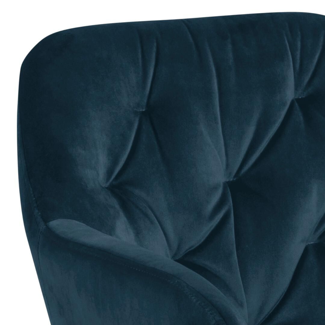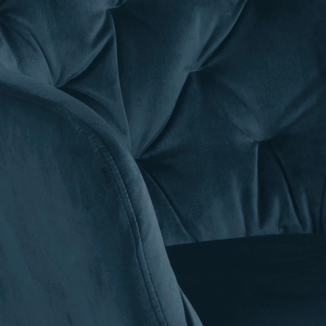 - Afwerking: marineblauw textiel, getufte details, ruwe poedercoating