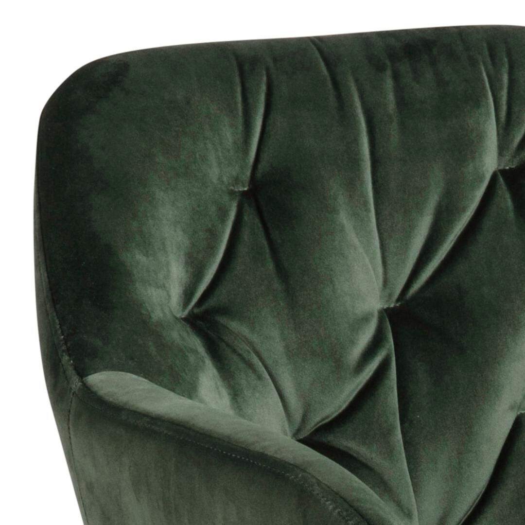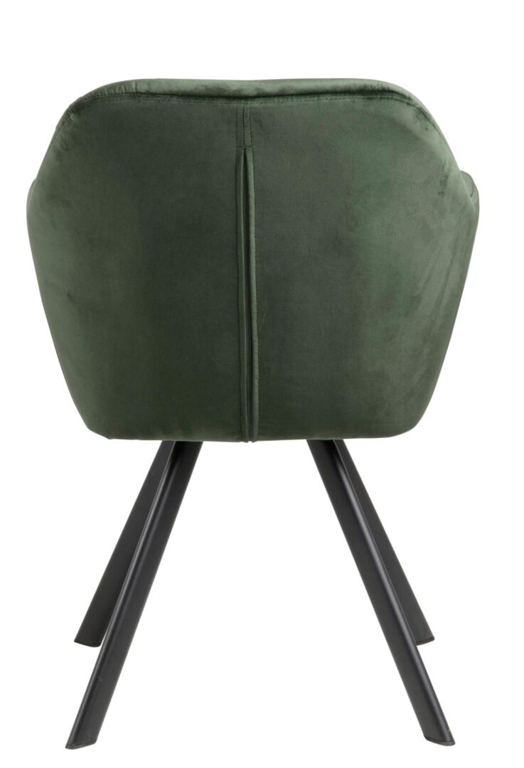 Afmetingen: H 81,5 x B 57,5 x D 61,5 cm; zithoogte 47,5; zitbreedte 40; zitdiepte 41; armhoogte 67,5 cm. Gewicht 8,8 kg. Onderhoud: stofzuigen, vlekken deppen met een zachte lichtvochtige doek. Martindale >25.000; lichtvastheid 5; pilling 4. Kleur: bosgroen met matzwarte poten.