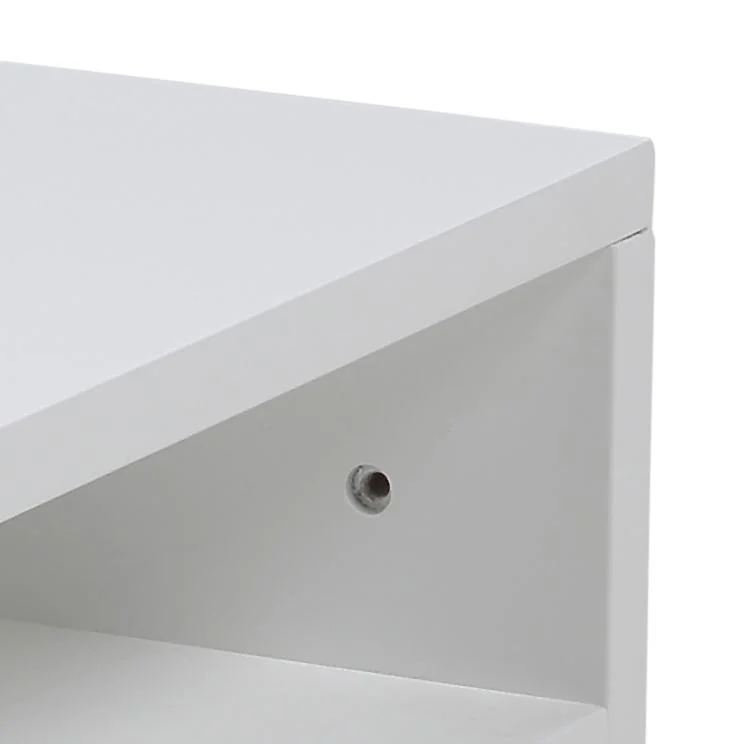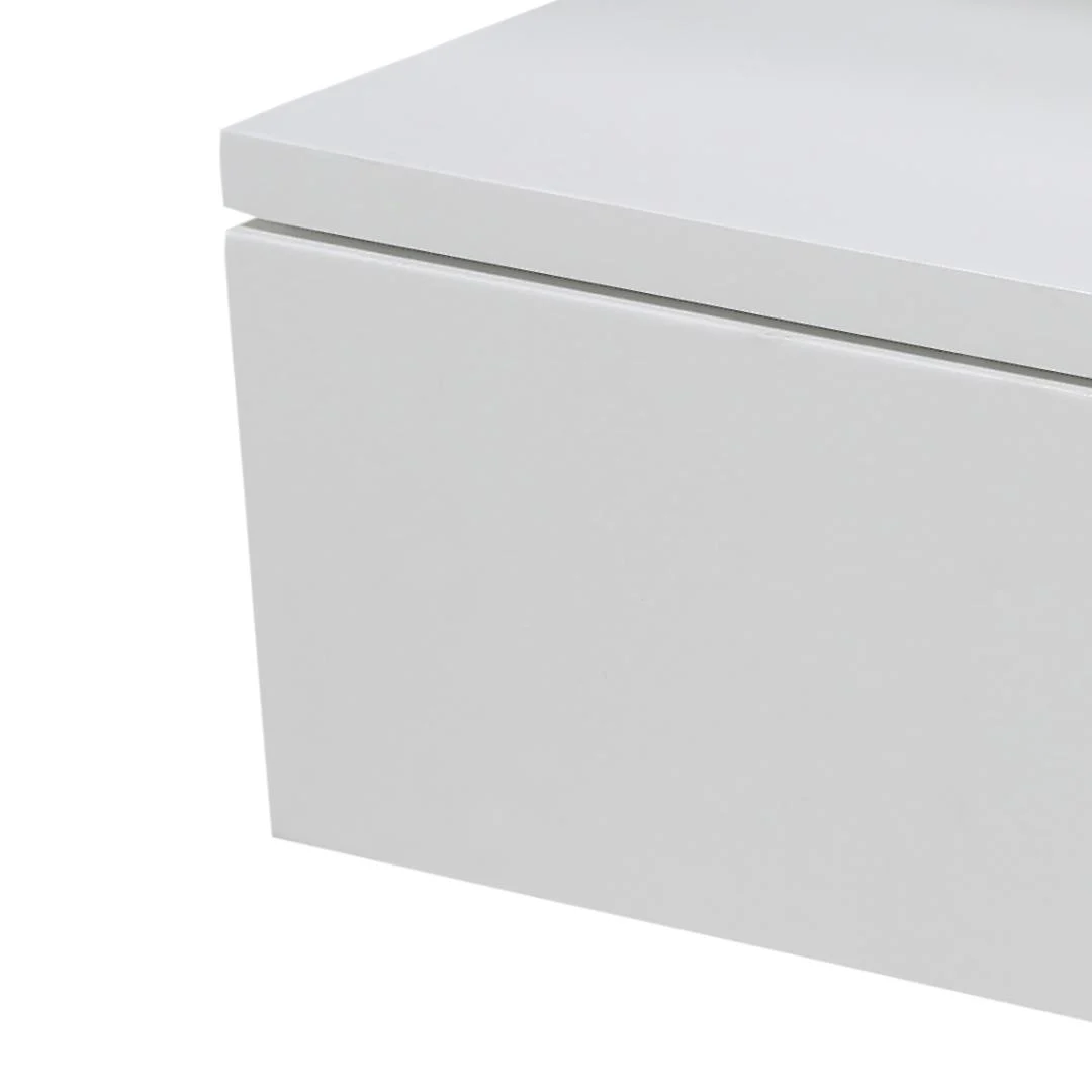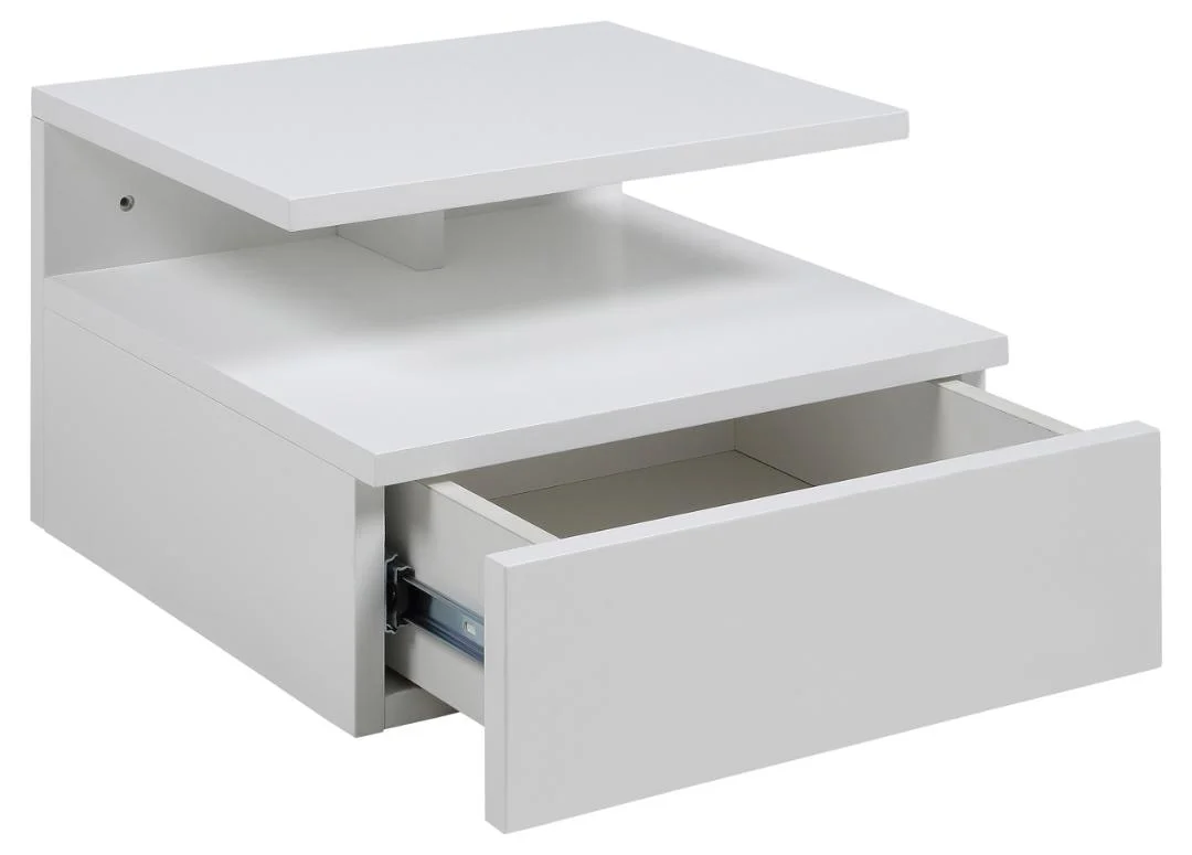 Maak je slaapkamer licht en opgeruimd met dit zwevende nachtkastje in fris wit. Het rechthoekige ontwerp combineert een open vak met een handige lade, ideaal voor alles wat je ’s nachts binnen handbereik wilt hebben.