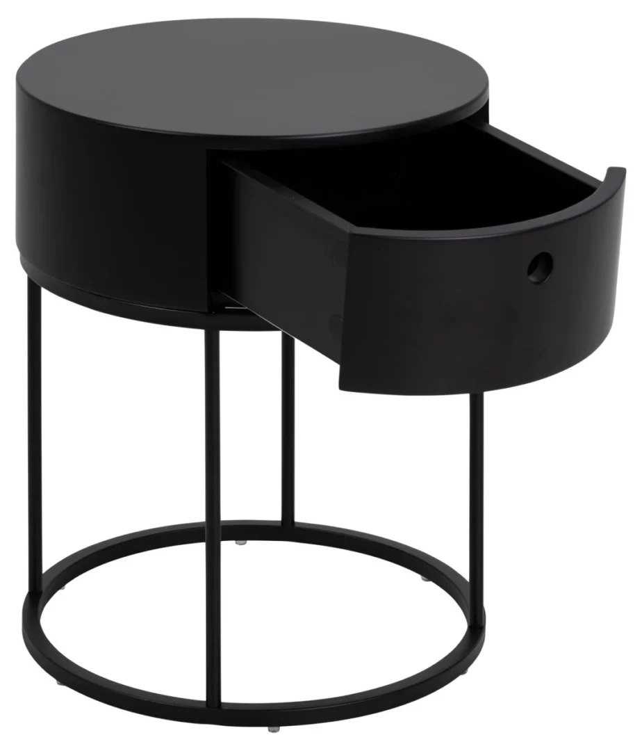 Breng rust en stijl in je slaapkamer met dit ronde nachtkastje in diep zwart. Met een diameter van 40 cm en een hoogte van 51 cm past het perfect naast je bed, terwijl de handige lade je spullen netjes uit het zicht houdt.