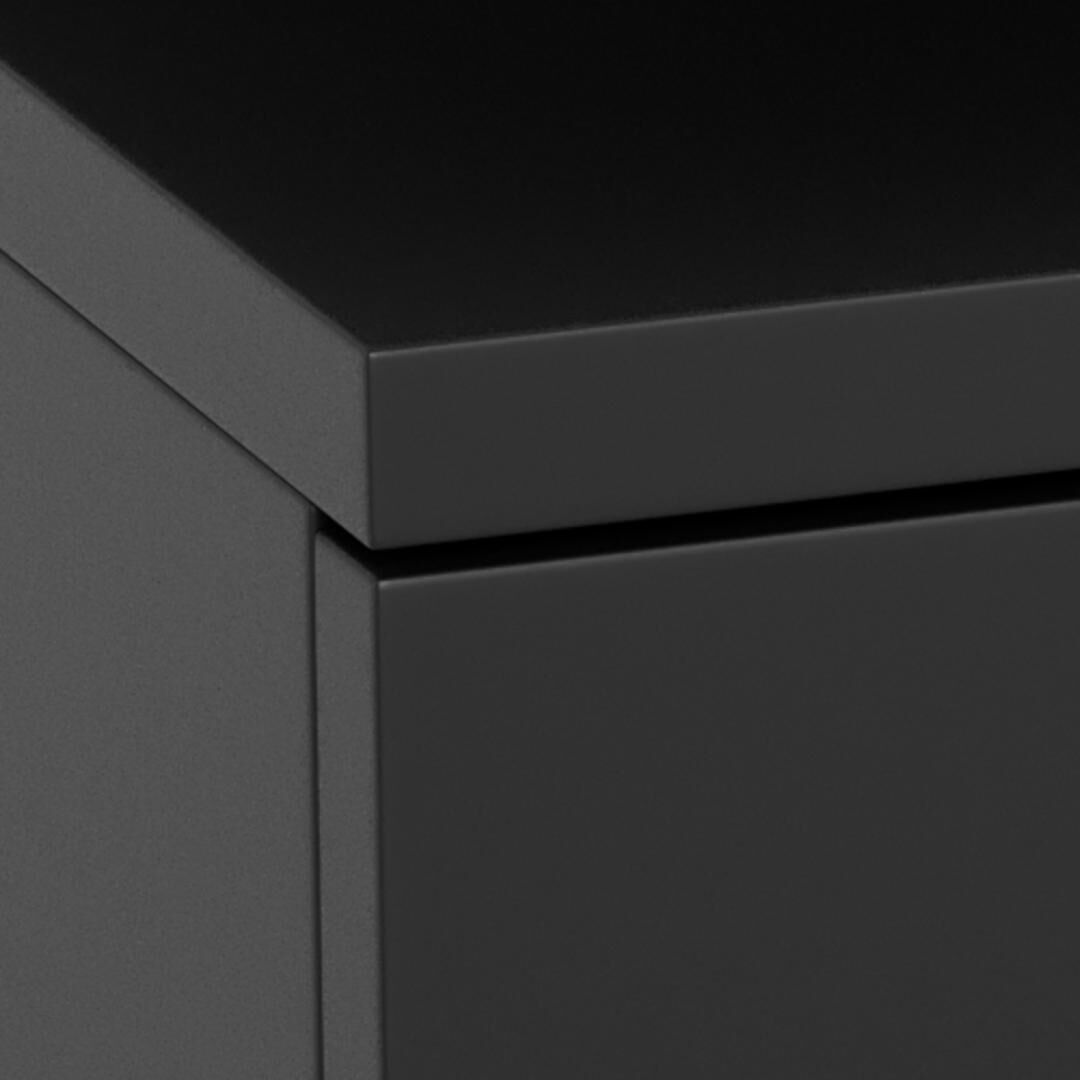 Materiaal: MDF (blad, frame, lade en plank) met UV-lak in zwart. Geleverd als 1 pakket met eenvoudige montage. Reinig met een zachte, licht vochtige doek en droog na.