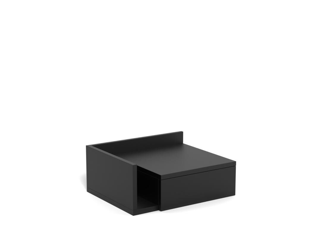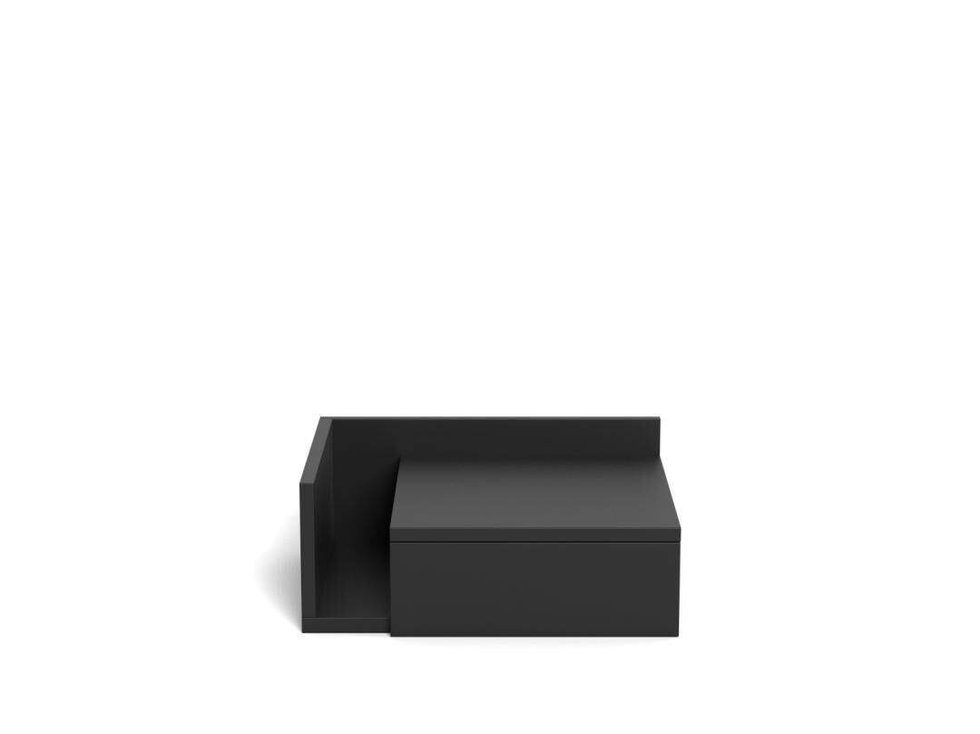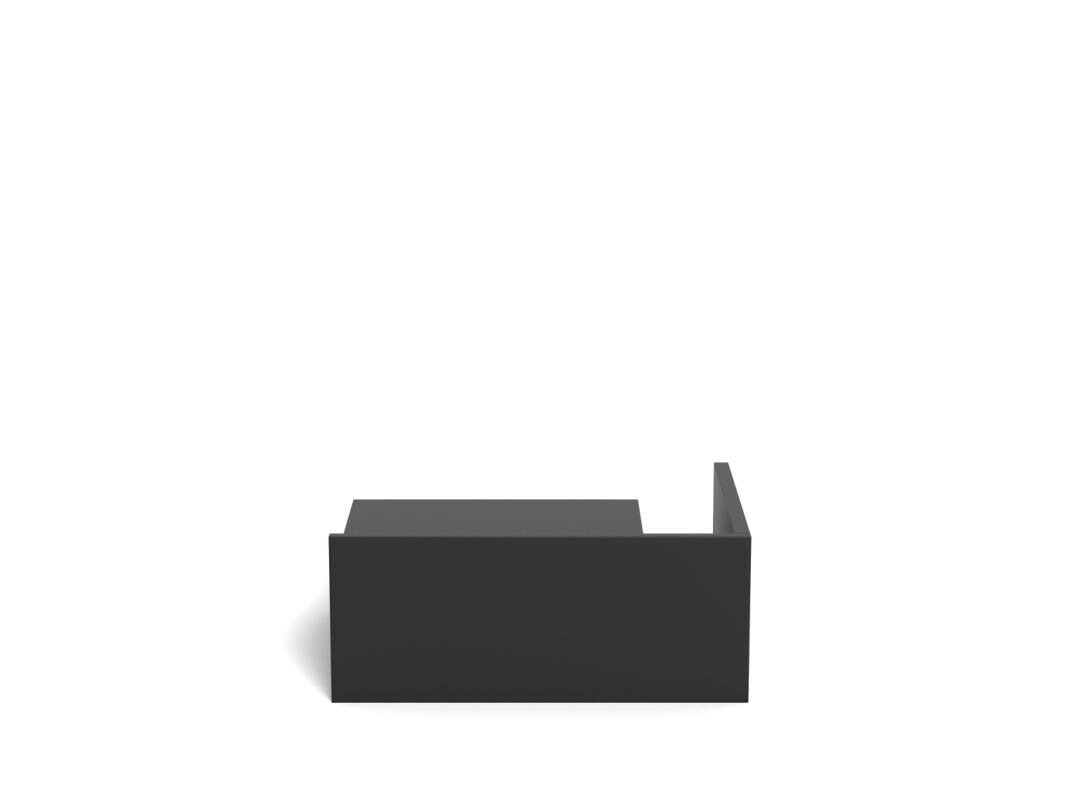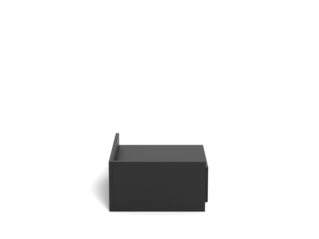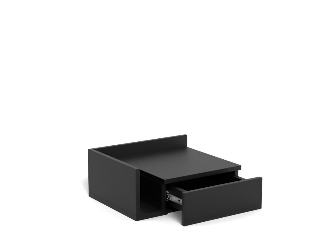 Maak je nachthoek compleet met een strak, zwevend nachtkastje in diep zwart. Het compacte, vierkante design houdt de vloer vrij en geeft je precies de opbergplek die je naast het bed nodig hebt.