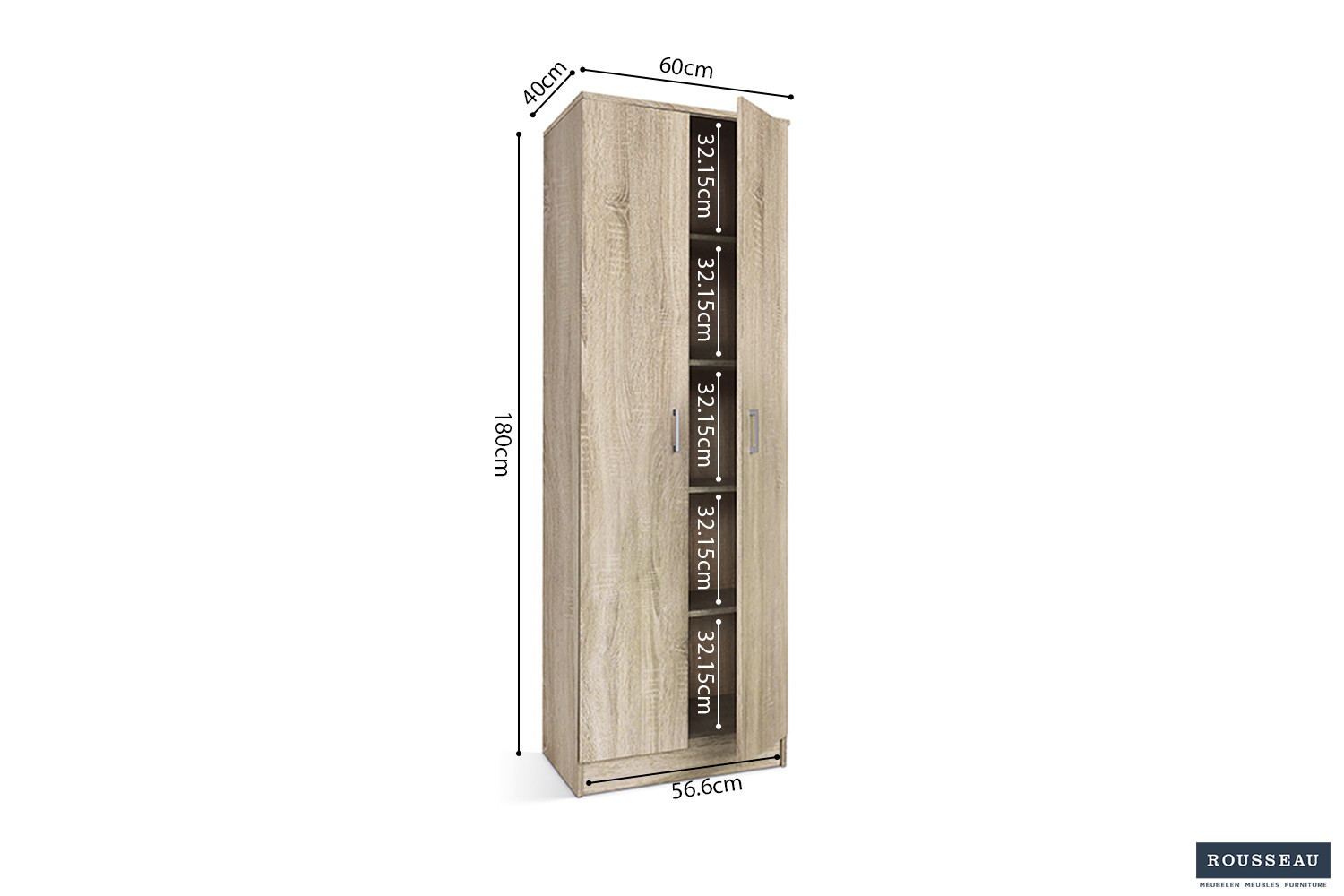 Opbergkast ‘Ray’ 2 deuren en 4 legplanken Sonoma (1c)