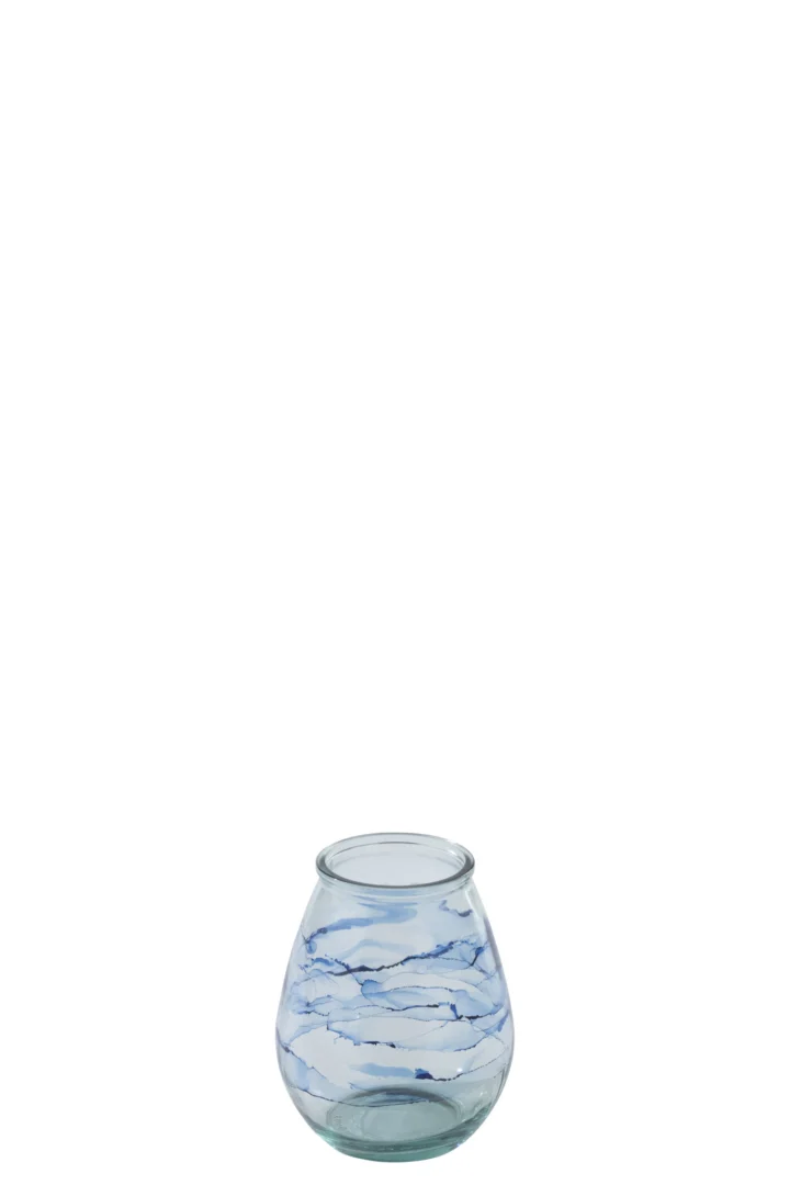 Zorg voor een instant gezellige gloed met deze blauwe glazen kaarsenhouder met golvend, orkaanachtig reliëf. Het doorschijnende glas verspreidt het kaarslicht speels door de ruimte en maakt van elk moment iets bijzonders.