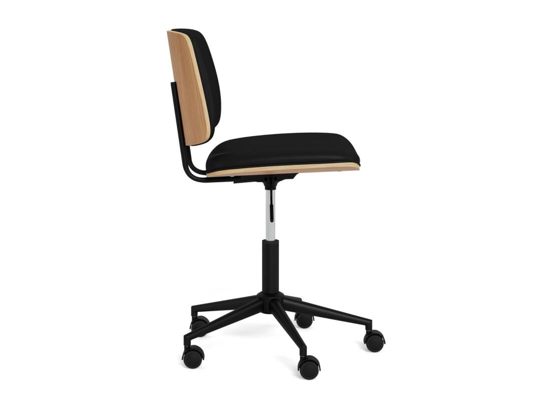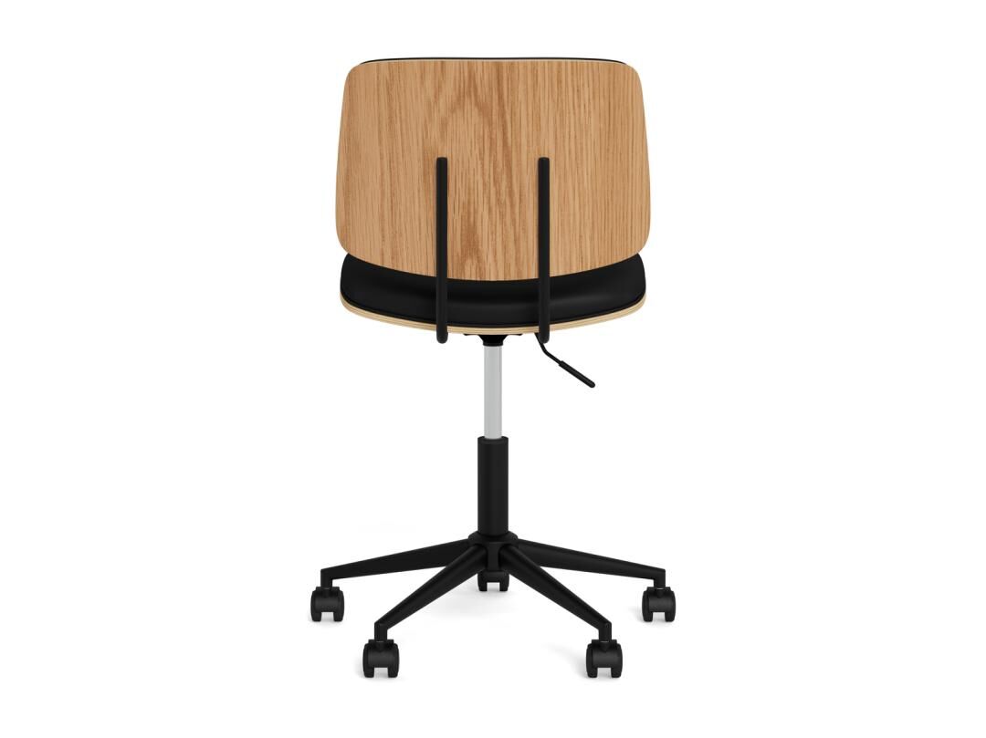 - Zitschaal: eikenfineer met watergedragen lak en zwarte PU-bekleding