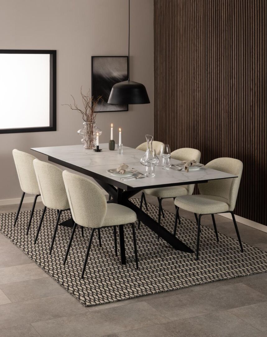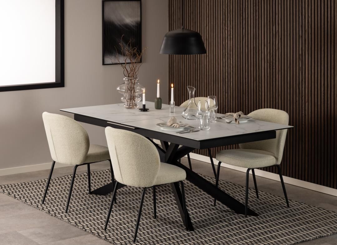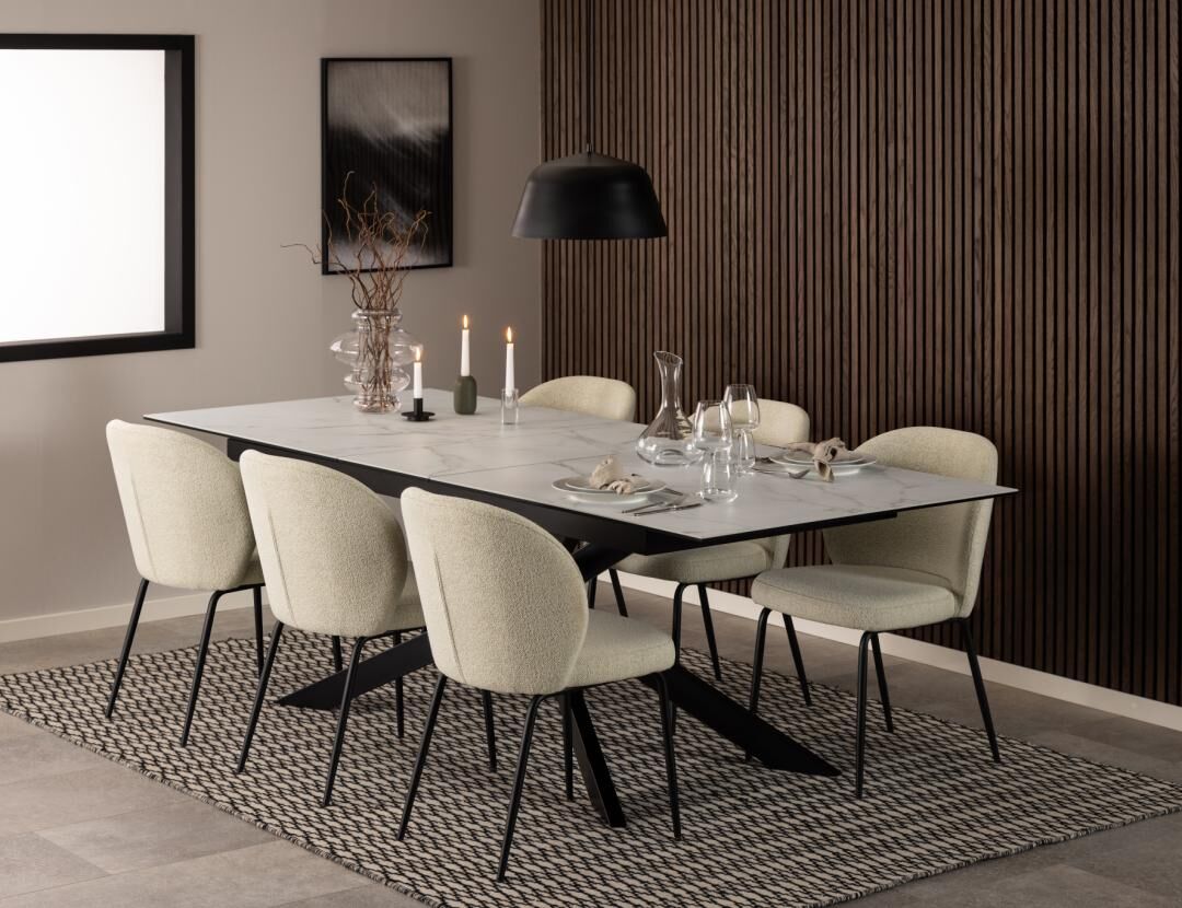 • Comfortabele vulling: PU-schuim 25–30 kg/m³ en prettige zithoek voor lange diners