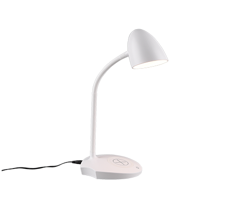 Deze tafellamp is handig als leeslamp bij bed of bureau. De flexibele kop en vier dimstanden geven controle over de lichtsterkte, terwijl het inductie-oplaadvlak apparaten draadloos oplaadt. Minder geschikt voor wie fel licht nodig heeft. Prima keuze voor werkrust.