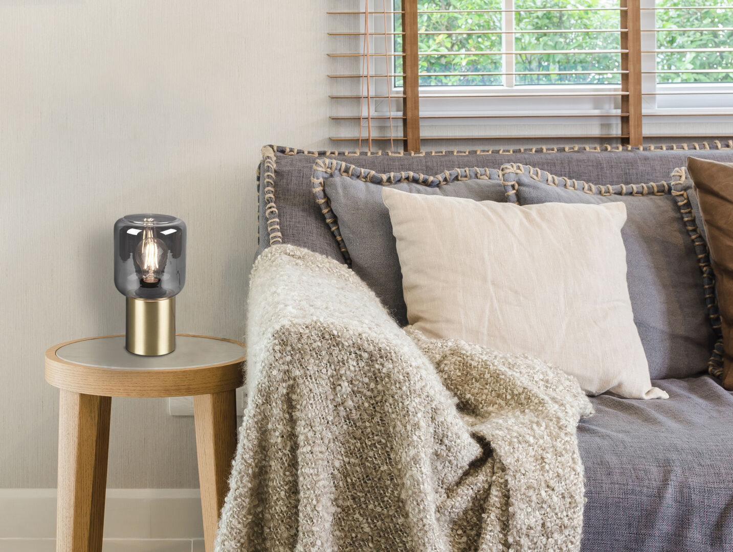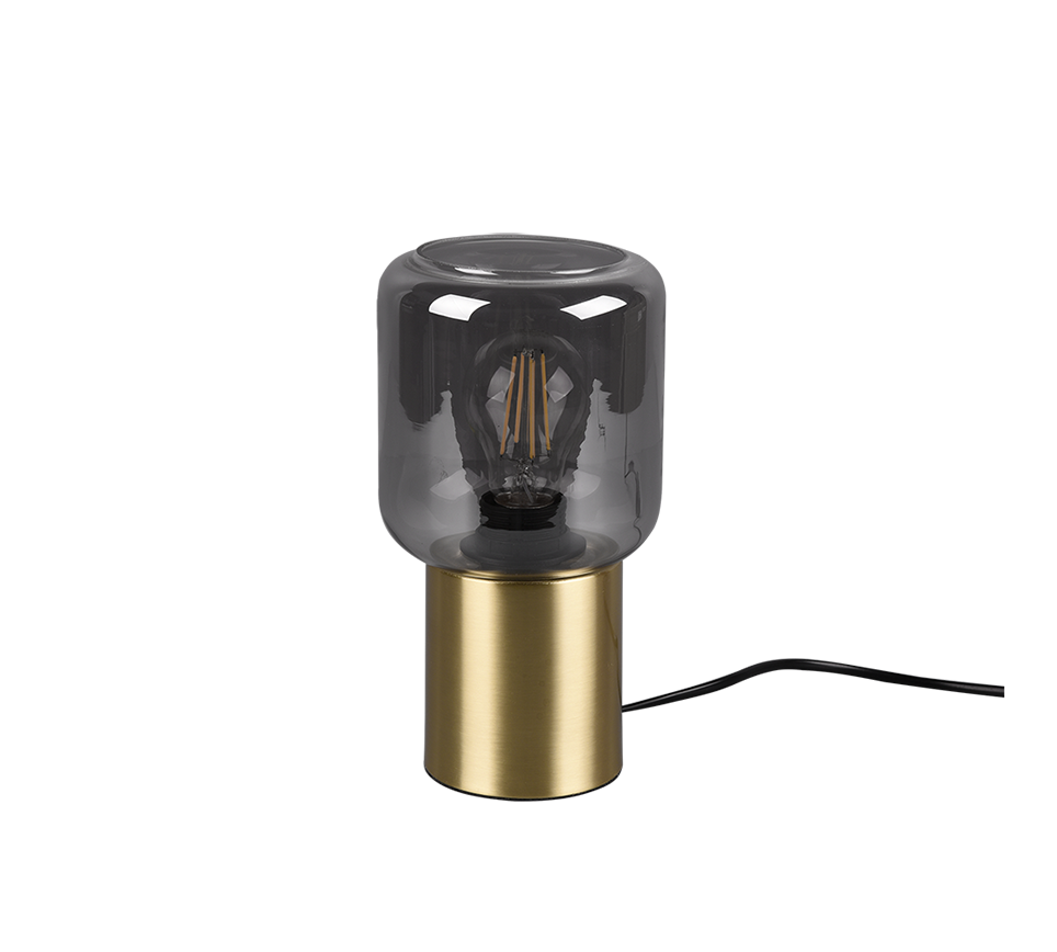 Deze tafellamp voegt direct sfeer toe op een dressoir of nachtkastje dankzij het warme messing en het stijlvolle rookkleurige glas. De snoerschakelaar werkt prettig. Door het compacte formaat minder geschikt voor grote ruimtes. Ideaal voor liefhebbers van moderne accenten.
