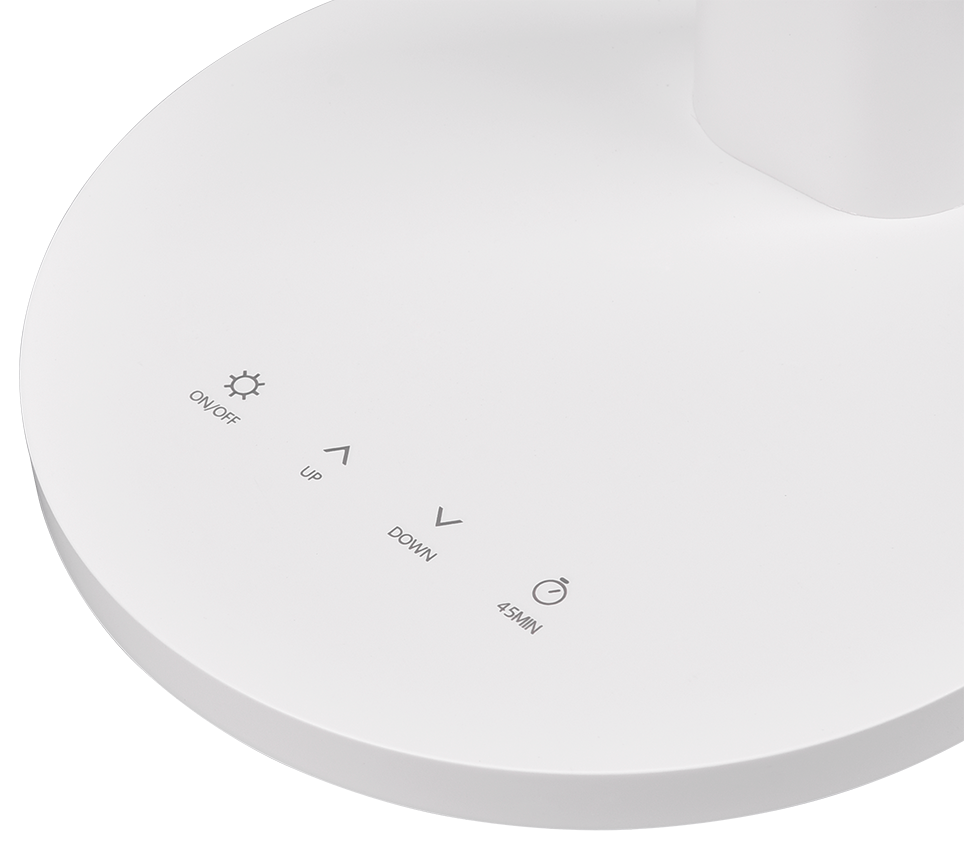 A: Je schakelt de lamp in en uit via de aanraakbediening en kiest met hetzelfde touchpaneel uit vijf helderheidsniveaus, zodat je snel de juiste lichtsterkte instelt voor elke situatie.