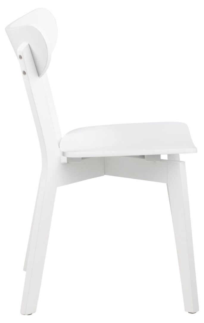 Eetkamerstoel met retro-moderne look in wit. Stevige MDF-zitting (acrylgelakt) en rubberhout poten met AC-lak, uitgerust met viltjes ter bescherming van je vloer. Comfortabel en duurzaam, draagkracht 110 kg. Demontabel en snel te monteren. Past in elk interieur.