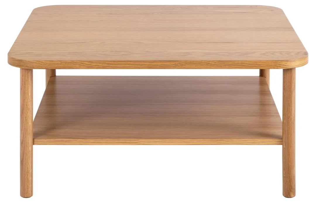 Geef je zithoek een natuurlijke, warme upgrade met deze vierkante salontafel in eiken. Het royale blad en de open legplank bieden volop ruimte voor dagelijks gebruik, zonder dat het rommelig oogt.