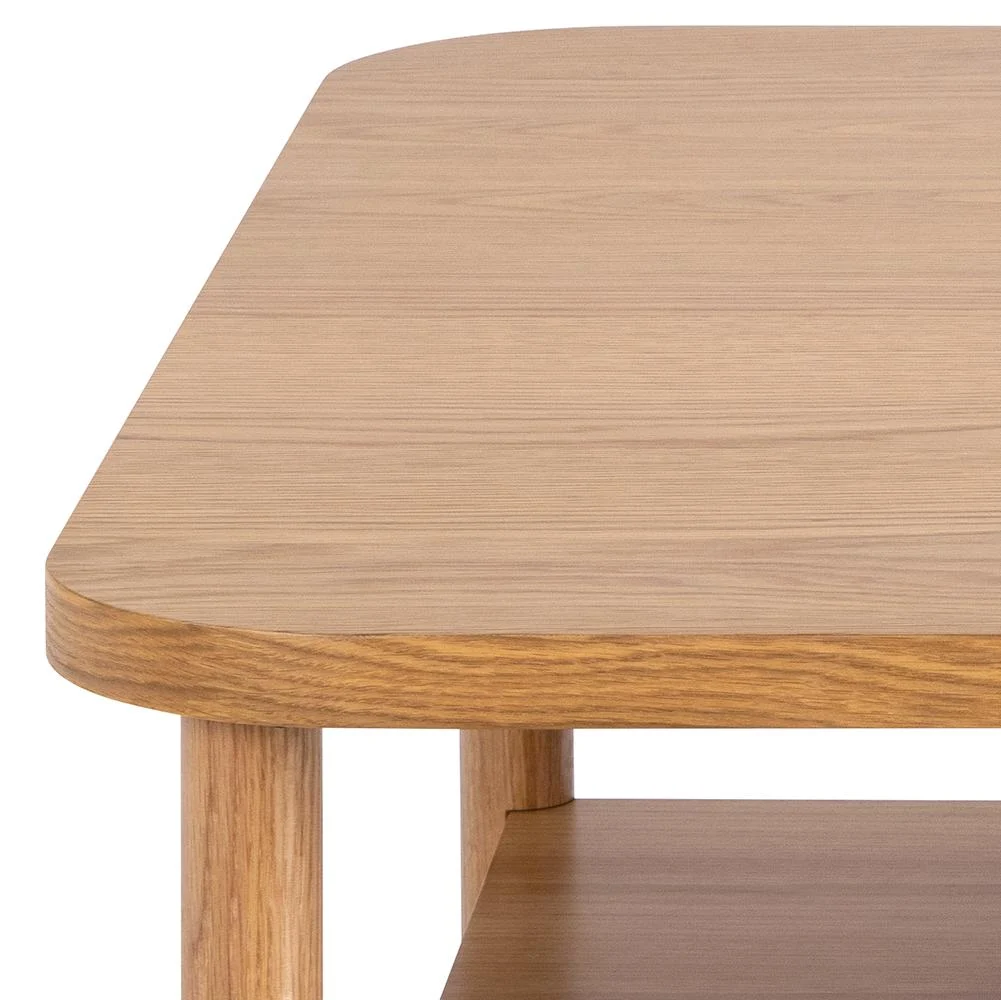 Dankzij de natuurlijke eikenkleur past deze salontafel moeiteloos in Scandinavische, moderne en landelijke interieurs. Perfect voor koffiekopjes, afstandsbedieningen en magazines; de plank houdt het blad netjes vrij.