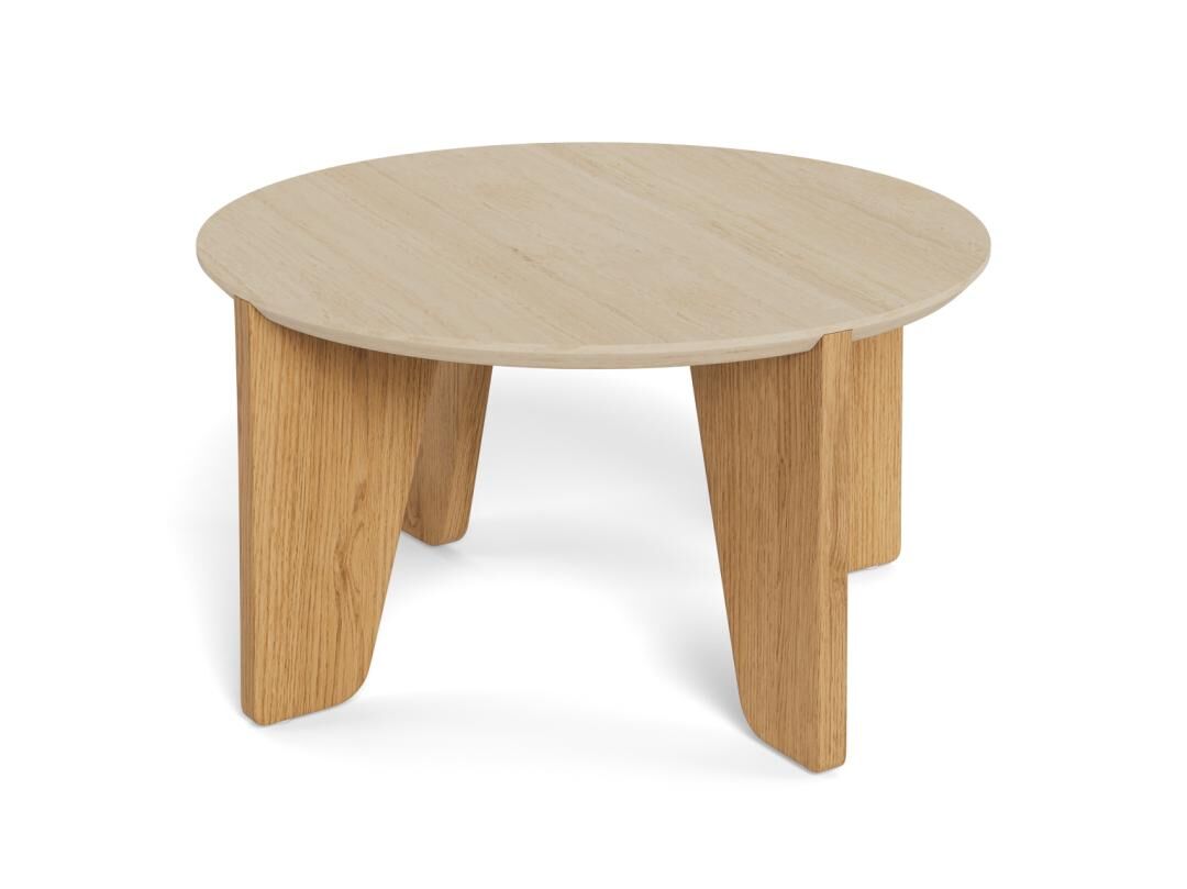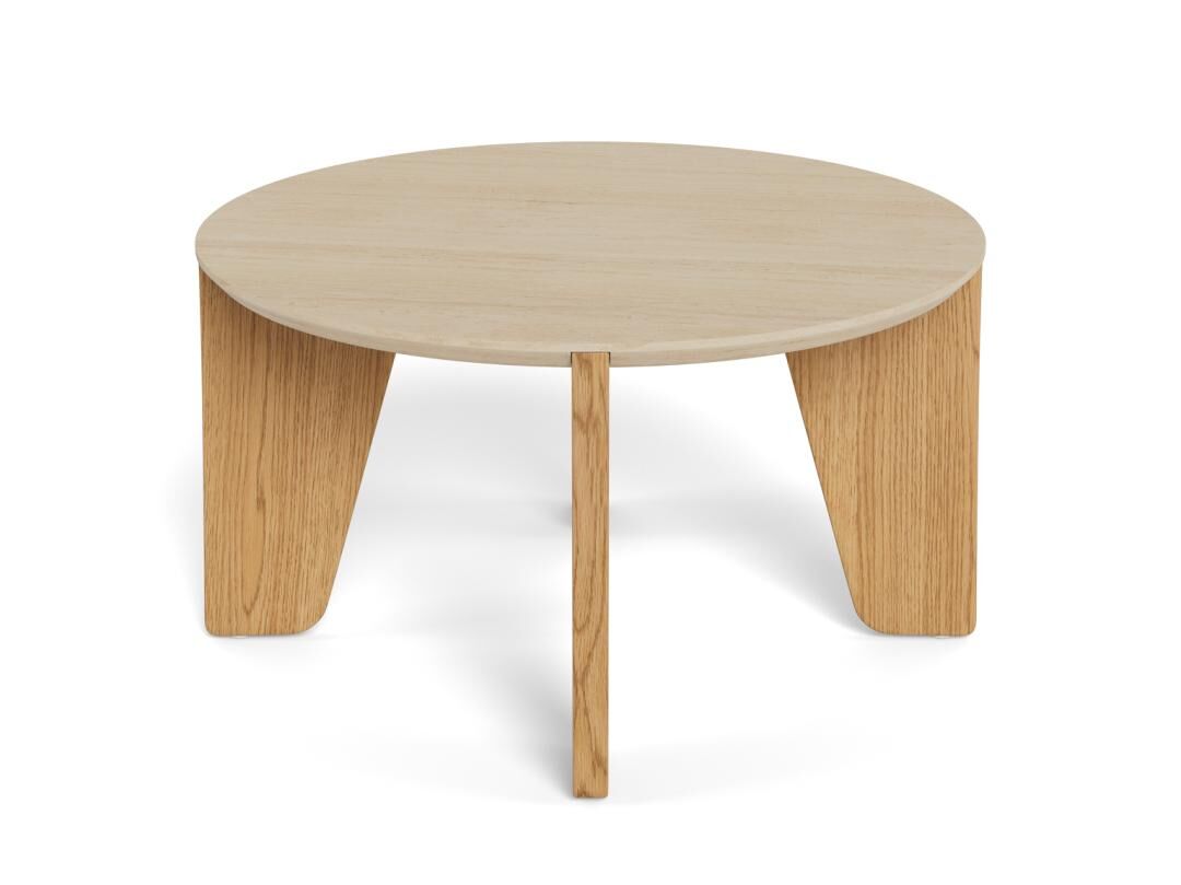 Stijlvolle ronde salontafel (Ø80 x H45 cm) met beige travertijnlook blad en matte wilde-eik poten. Stevig MDF, ruwe afwerking en viltpads voor vloerbescherming. Draagkracht 20 kg, 4 poten, eenvoudige montage. Perfect voor elke woonkamer. Topdeal: €79, bestel nu!