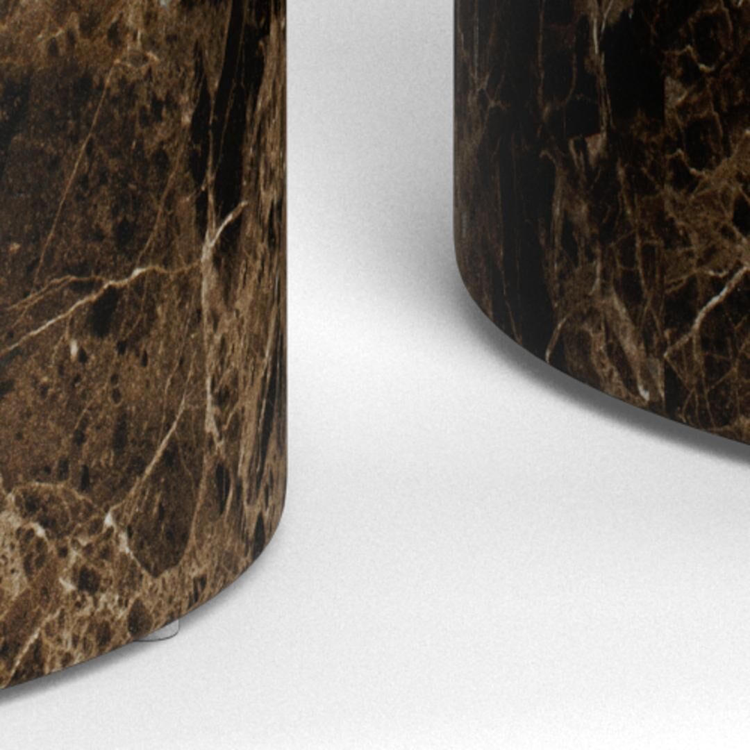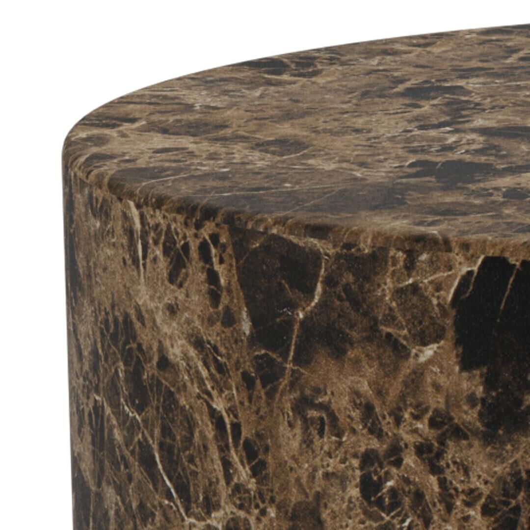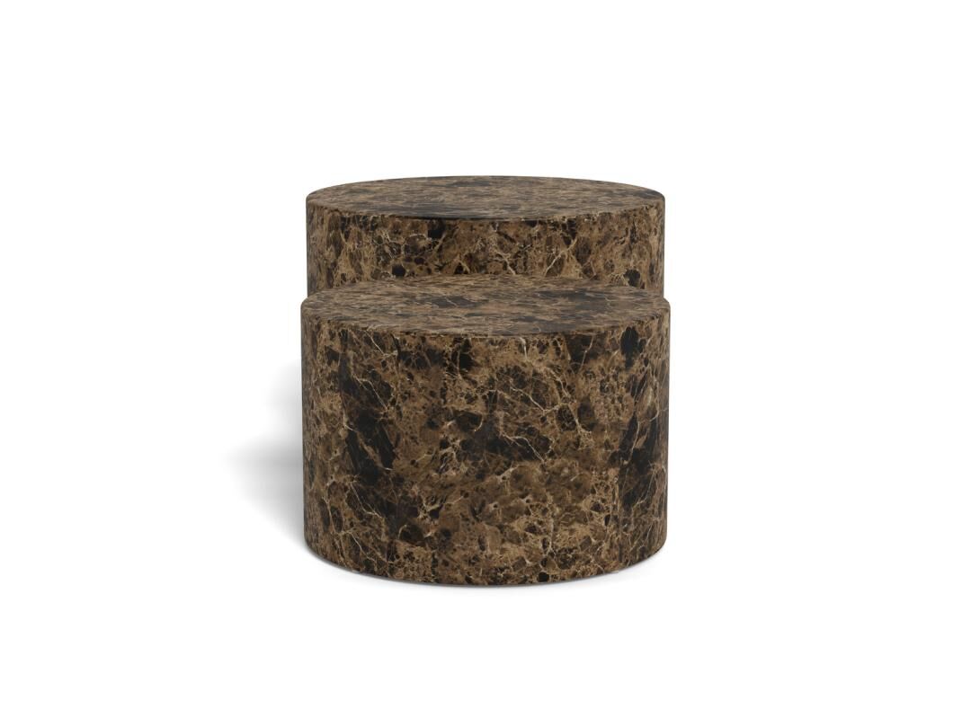 Geef je woonkamer een warme upgrade met deze ronde salontafelset in stijlvolle bruine marmerlook. De twee tafels vormen een speels duo dat je naar wens kunt overlappen of apart gebruiken.