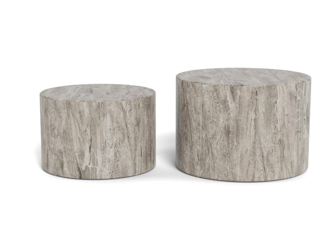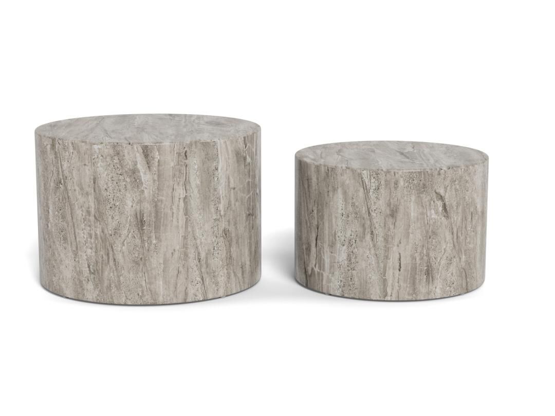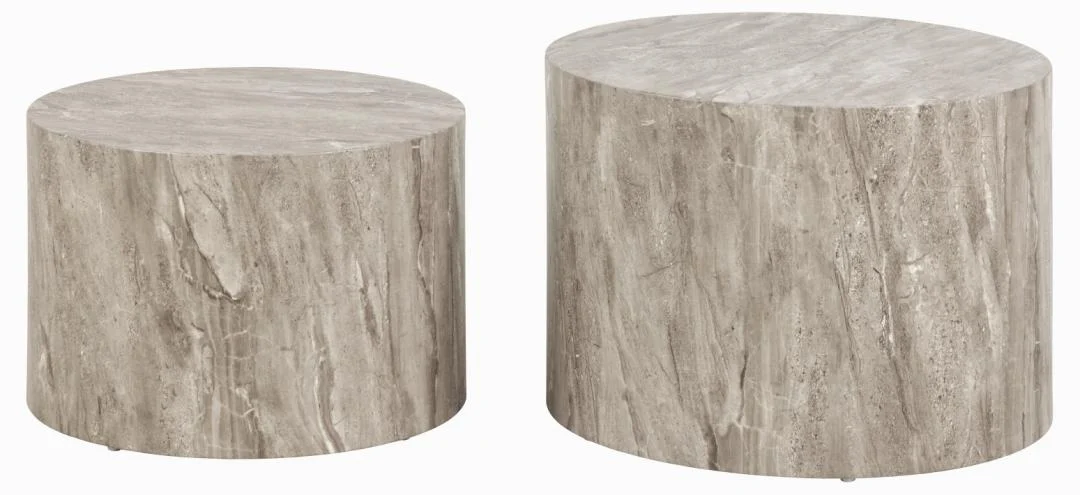 Geef je zithoek een moderne upgrade met deze 2-delige ronde salontafelset in elegant grijs met subtiele marmerlook. Compact, stijlvol en direct klaar voor gebruik—perfect voor elke woonkamer.