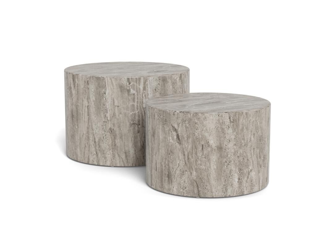 De tafels schuif je makkelijk in elkaar voor een speels effect of gebruik ze los als salontafel en bijzetter. Ideaal voor koffie, magazines of een mooie vaas. De neutrale grijstint past moeiteloos bij moderne, industriële en Scandinavische interieurs en werkt ook in kleinere ruimtes.