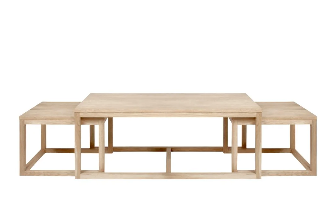 Schuif de kleinere tafels naar voren als er visite is, of zet er één naast de bank voor je boek en drankje. De lichte, witte tint past moeiteloos in moderne en Scandinavische interieurs; het geoliede hout zorgt voor warmte en sfeer.
