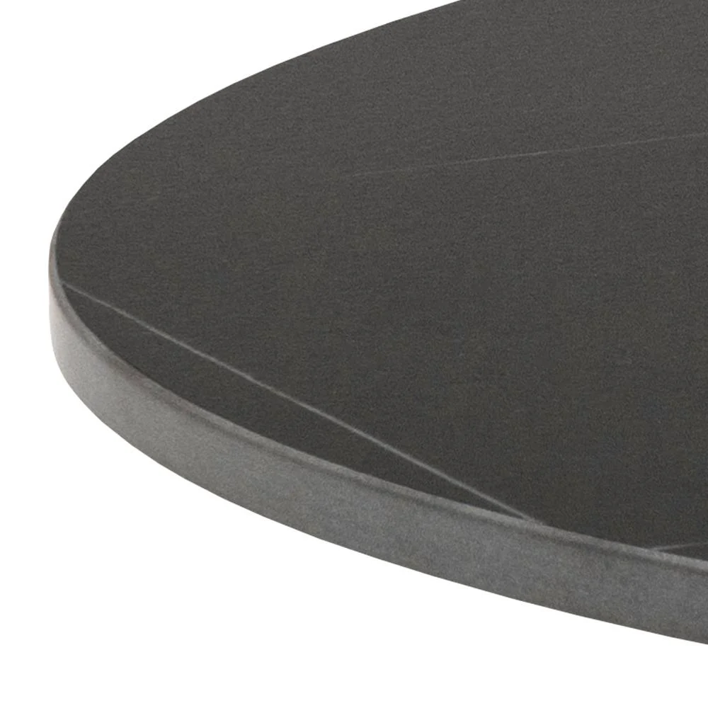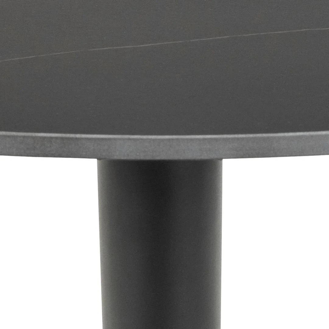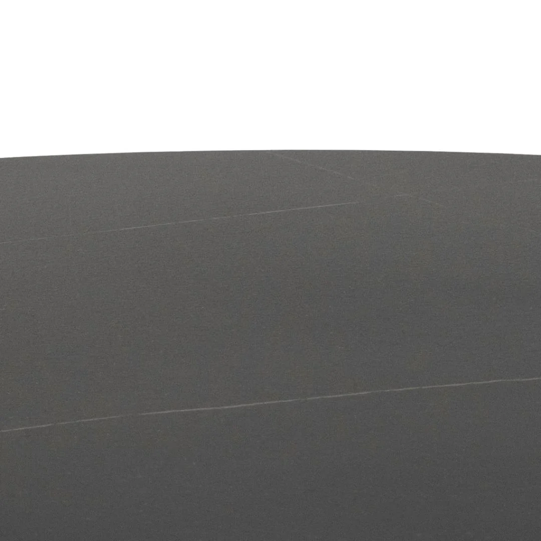 Compacte, stabiele salontafel met mat zwart keramisch blad; krasgevoelig oppervlak vereist voorzichtig gebruik. Geschikt voor moderne interieurs.