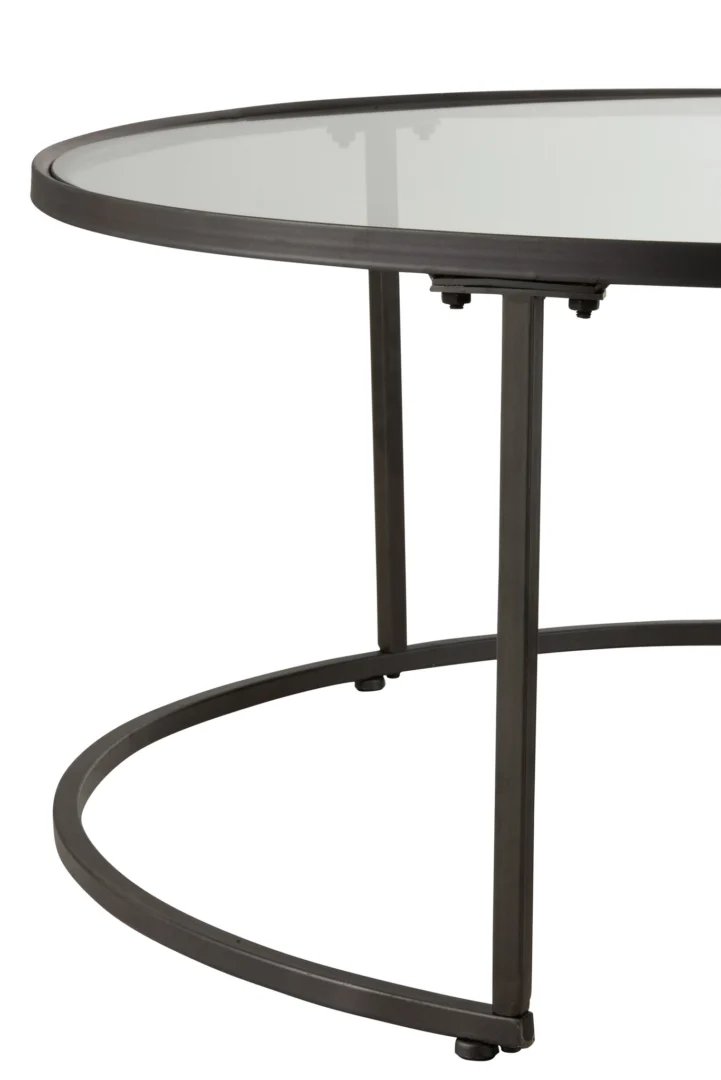 - Tijdloos zwart met slank metalen frame en glazen blad