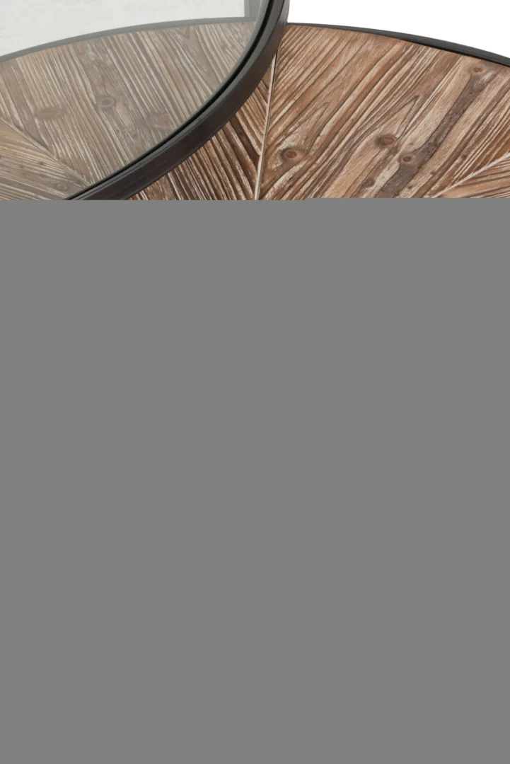 Materiaalsamenstelling: glas 40%, sparrenhout 35%, metaal 25%. Onderhoud: afnemen met een zachte, licht vochtige doek, gebruik onderzetters en vermijd agressieve reinigers.