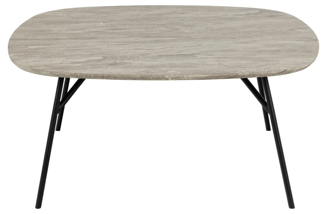 Breng stijlvolle rust in je woonkamer met deze vierkante salontafel in grijze marmerlook. Het royale 90 x 90 cm blad met eiken kern rust op matzwarte stalen poten—sterk, strak en gemakkelijk te plaatsen.