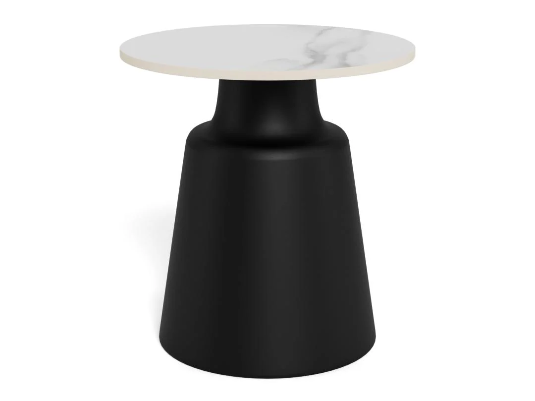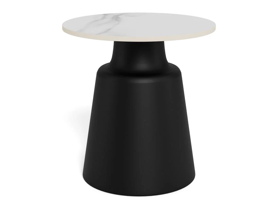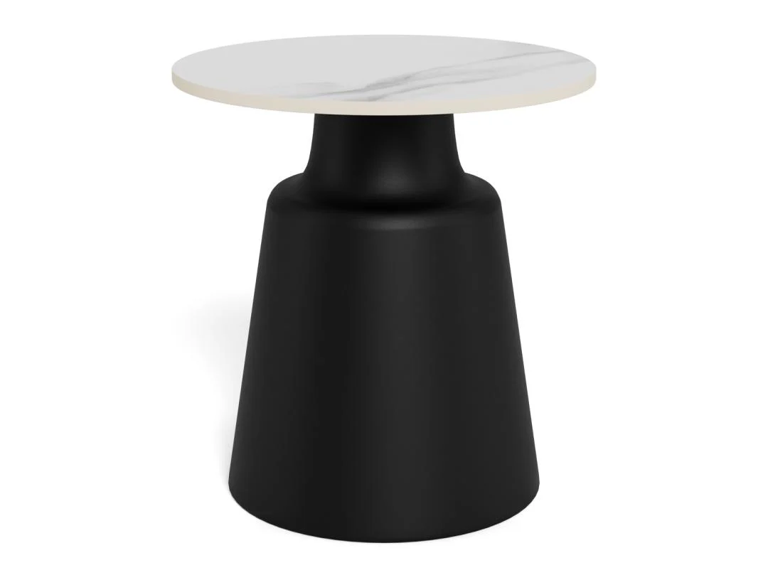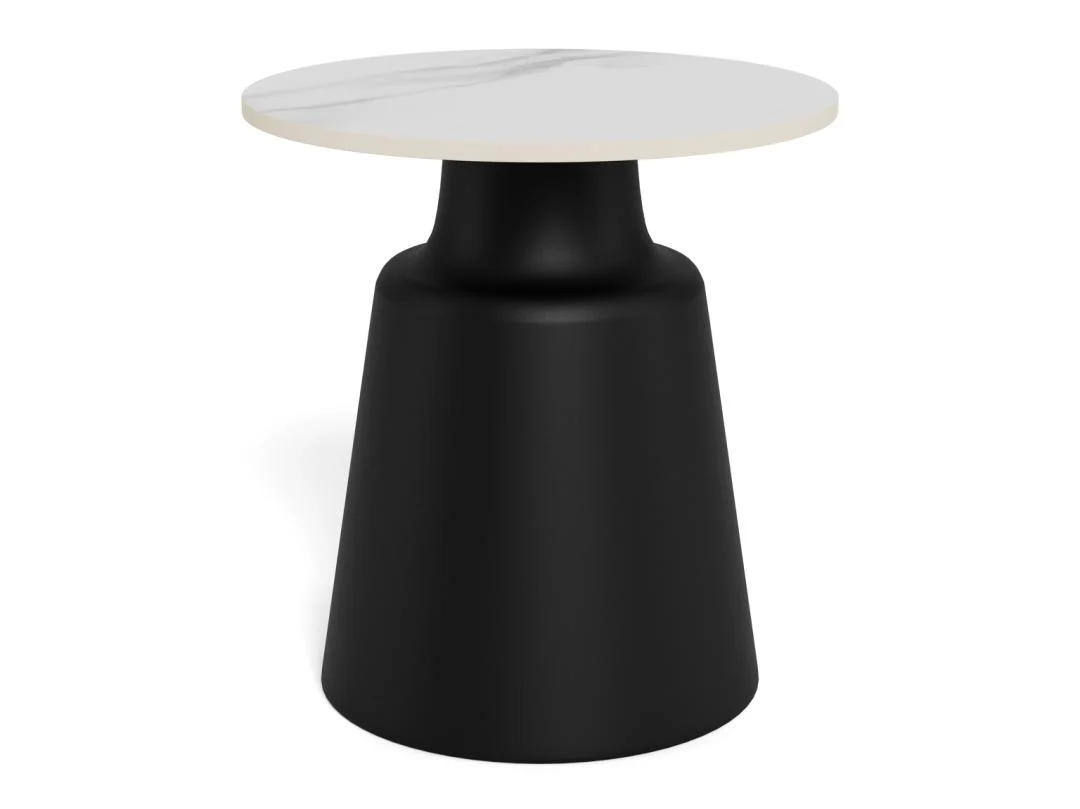 Geef je zithoek een stijlvolle upgrade met deze compacte ronde salontafel. Het witte keramische blad en de matzwarte zuilvoet vormen een tijdloze combinatie die moeiteloos in elk interieur past.