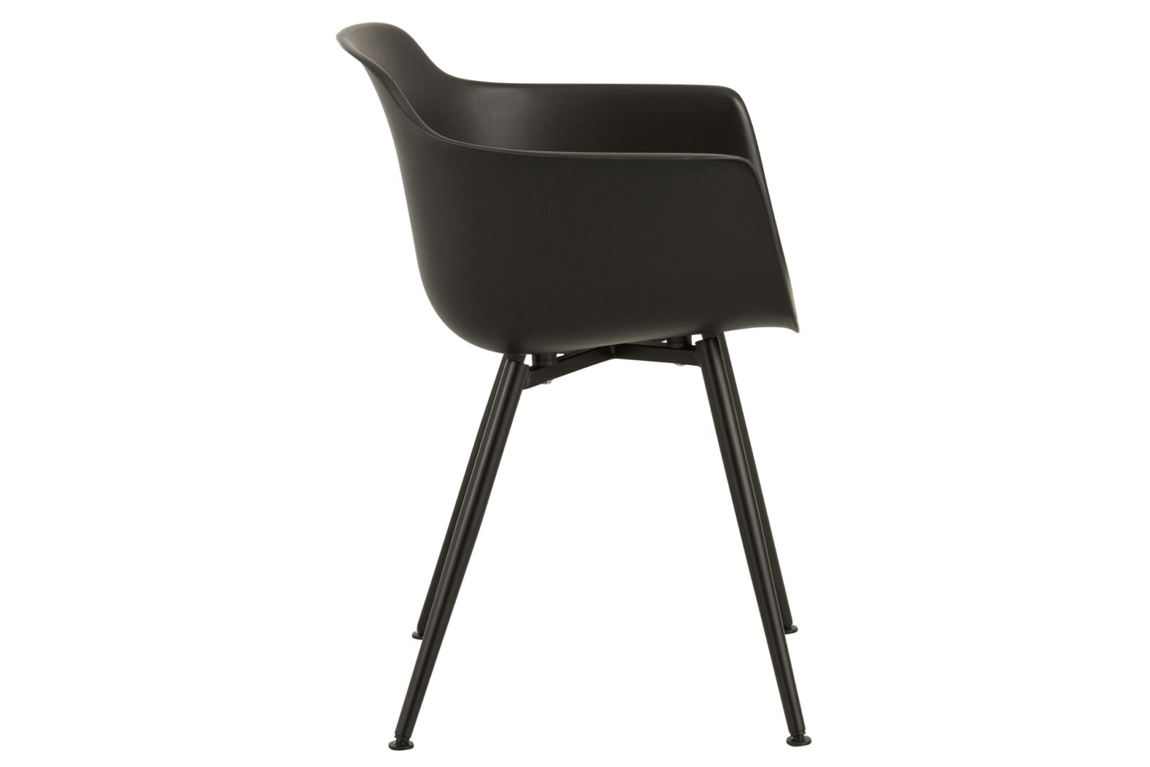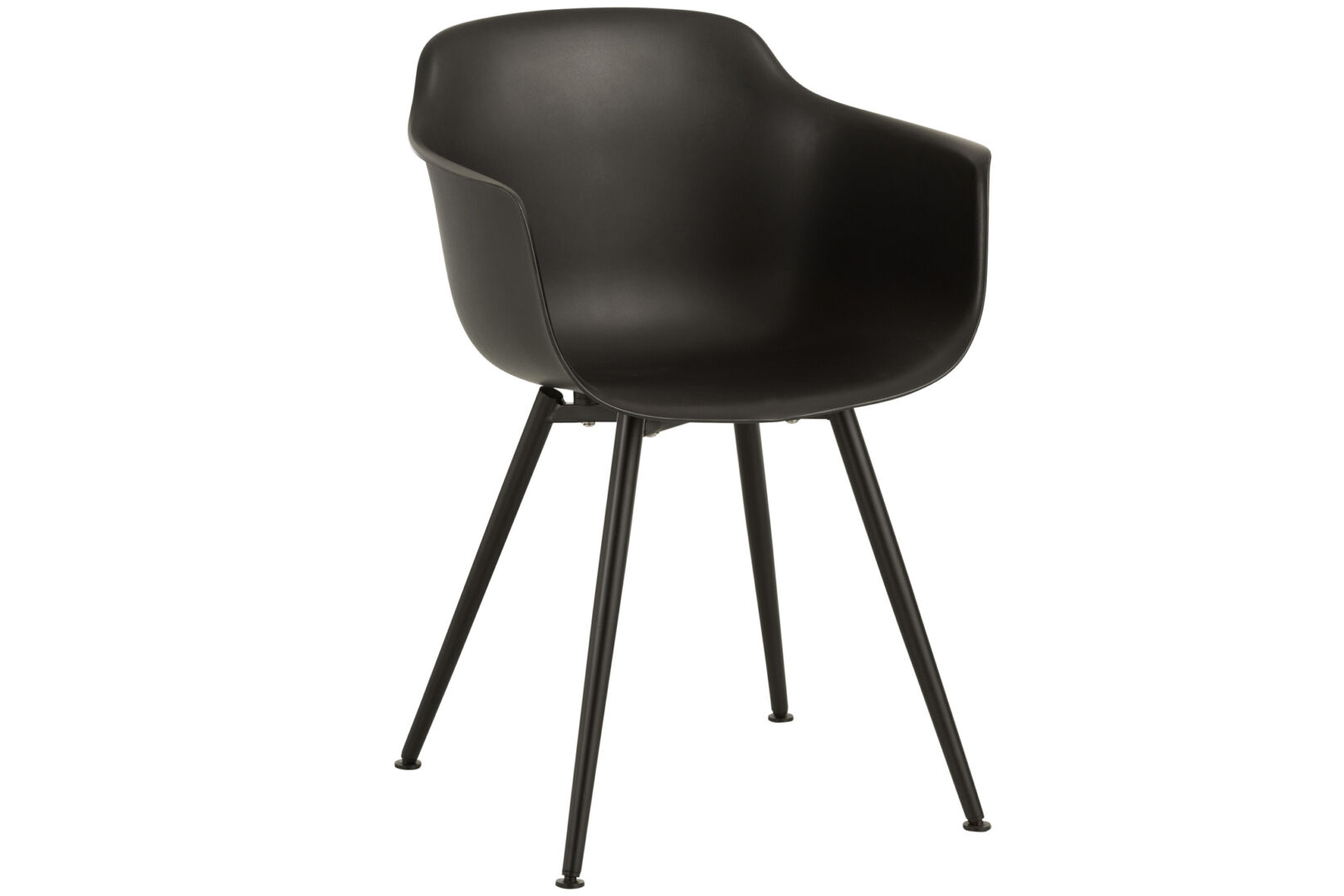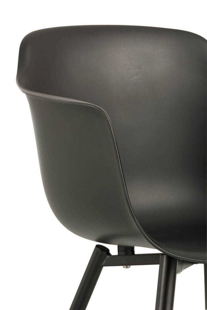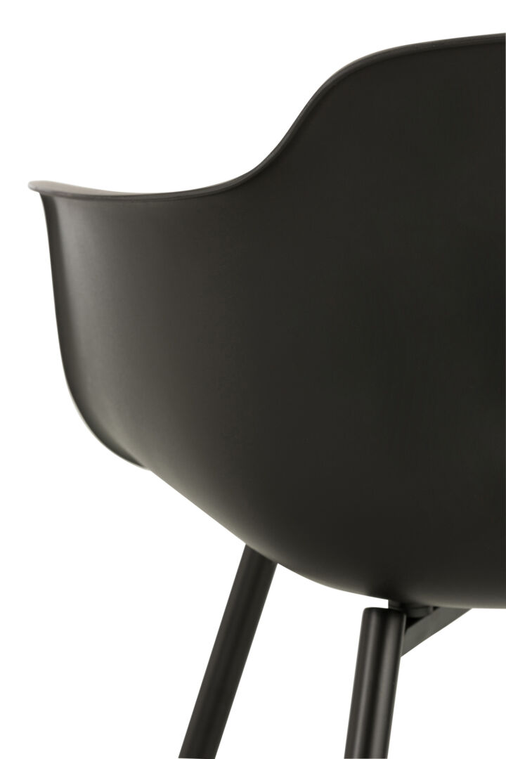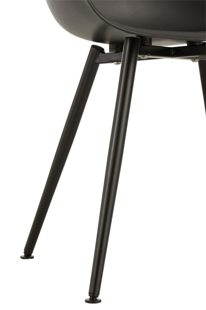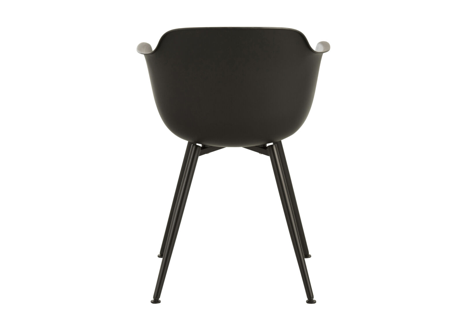 Een zwarte eetkamerstoel met polypropyleen kuip en ijzeren frame: een zitmeubel dat zich moeiteloos voegt bij elke eettafel.