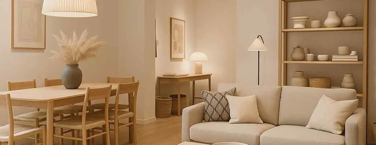 Lichte tinten als wit, beige en grijs vormen de basis, terwijl woonaccessoires in hout, keramiek of textiel voor subtiele contrasten zorgen. Denk aan een ronde eettafel in eikenhout, een wollen vloerkleed of stijlvolle dressoirs die functionaliteit en esthetiek perfect combineren.