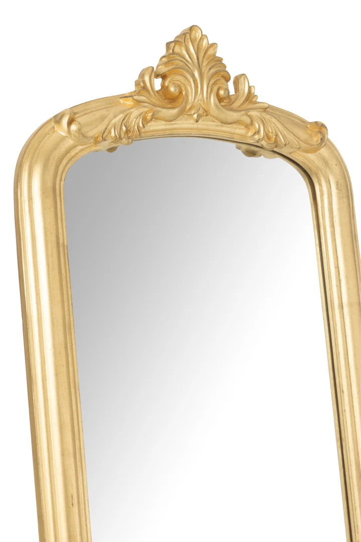 Deze staande spiegel komt goed tot zijn recht in een ruime hal of slaapkamer. Het royale formaat biedt een volledig overzicht en de goudkleurige rand geeft een warme uitstraling. Wel is het houten frame gevoelig voor krassen. Geschikt voor liefhebbers van klassieke interieurs. Een verzorgde toevoeging voor wie stijl en functionaliteit zoekt.