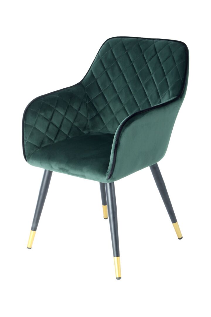 Ondersteunende rondingen, een stevige basis en een zit die je welkom heet. Deze eetkamerstoel in donkergroen fluweel verenigt zachtheid met betrouwbaarheid, ideaal voor lange etentjes en dagelijkse momenten.