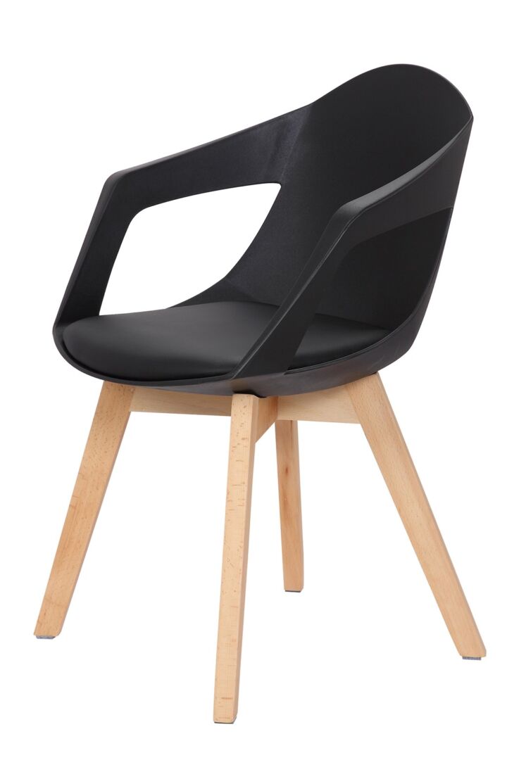 Meer dan een stoel — een rustig anker voor dagelijkse diners. De zwarte kuip met armleuningen draagt je moeiteloos door lange gesprekken, terwijl het geïntegreerde kunstleren kussen prettig blijft aanvoelen.