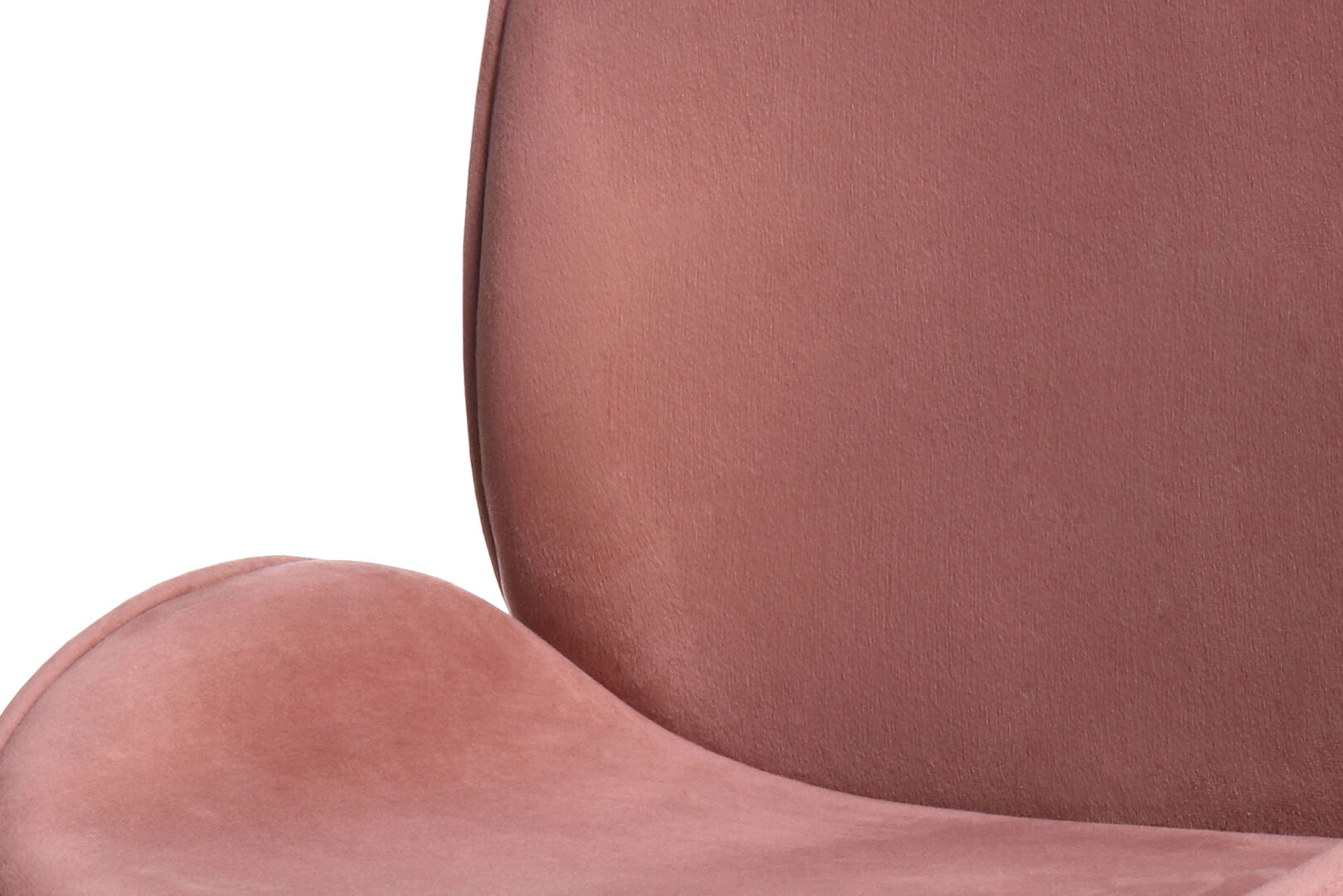 Zachte rondingen, een stabiele basis en een zit die je uitnodigt om te blijven. In oudroze oogt dit zitmeubel luxueus en tijdloos, met subtiele messingaccenten die elke eettafel flatteren.