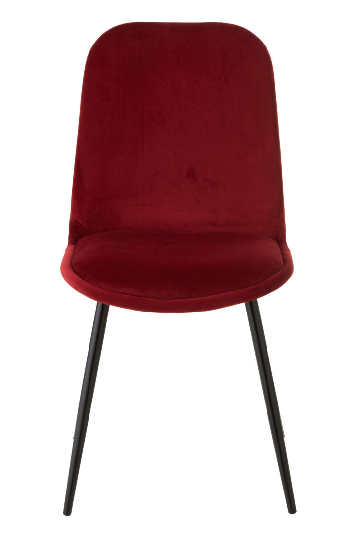 Eindelijk een eetkamerstoel die ook uren ná het toetje nog prettig zit. Slank, stevig, bordeaux.