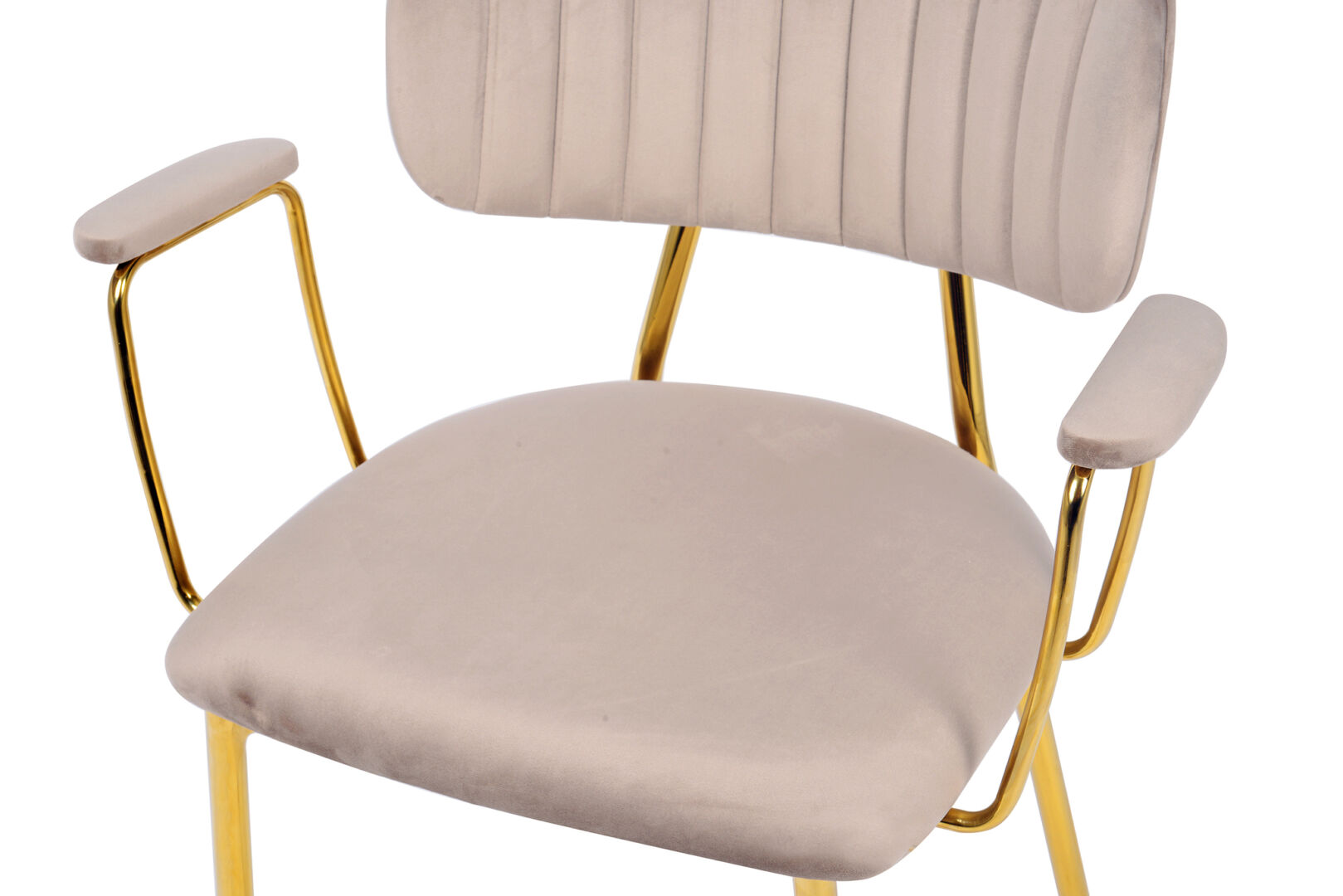 - Constructie: stevig goudkleurig metalen onderstel, rijk beklede kuip met geïntegreerde armleuningen