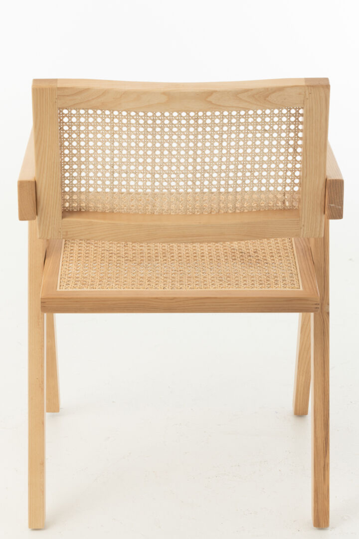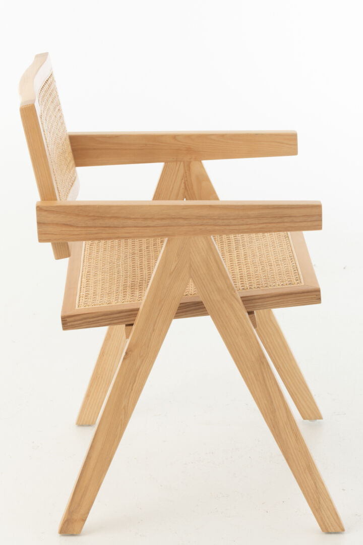 Deze stoel komt goed tot zijn recht aan de eettafel of in een leeshoek. Het rotan zorgt voor een luchtige uitstraling, terwijl het essenhoutrame robuust aanvoelt. De zitdiepte is wat aan de ondiepe kant bij langer zitten. Ideaal voor wie functionaliteit en natuurlijke materialen waardeert. Een doordachte keuze in licht interieur.